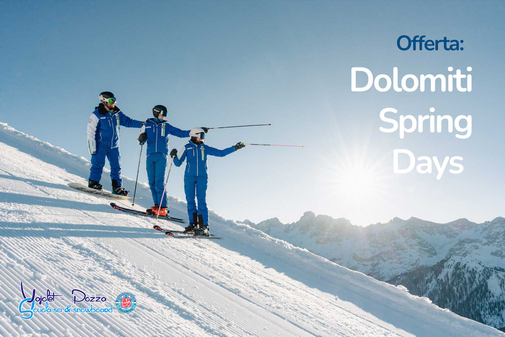 Die Skischule nimmt an den Dolomiti Superski-Aktionen teil. Außerdem wurde sie mit dem renommierten Qualitätssiegel "Oro" ausgezeichnet, der höchsten Auszeichnung, die vom Skilehrerverband des Trentino für den Unterricht mit Kindern vergeben wird. Verleih und Aufbewahrung der Ausrüstung direkt in der Skischule.