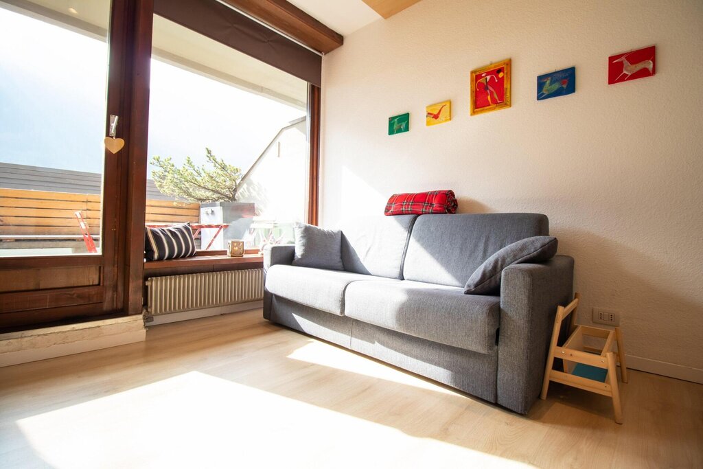 Willkommen im Casa Franz, einer Ferienwohnung, die 2020 komplett renoviert wurde und sich in Mazzin im wunderschönen Fassatal, im Herzen der Dolomiten, befindet. Die Unterkunft, ideal für bis zu 4 Personen, erstreckt sich über ca. 54 m² und bietet einen Wohnbereich mit voll ausgestatteter Küche (Geschirrspüler, Mikrowelle, Kaffeemaschine), Schlafsofa, Fernseher und Esstisch; ein Schlafzimmer mit Doppelbett und Etagenbett, getrennt durch eine Trennwand für mehr Privatsphäre; sowie ein Bad mit Dusche und Haartrockner. Der Eingang ist unabhängig, und die Wohnung erstreckt sich über zwei Ebenen (nicht geeignet für Personen mit eingeschränkter Mobilität). Eine private Terrasse im Außenbereich und ein Kamin im Inneren schaffen eine warme und einladende Atmosphäre. Die Lage ist ideal: weniger als 2 km von den Skipisten des Col Rodella (Campitello di Fassa) und von Pera di Fassa (Catinaccio-Gebiet) entfernt, und nur 5 km bis nach Canazei – perfekt sowohl für Skifahrer im Winter als auch für Wander- und Bergliebhaber im Sommer. Eine moderne, komfortable Unterkunft mit guter Anbindung an die öffentlichen Verkehrsmittel des Tals.