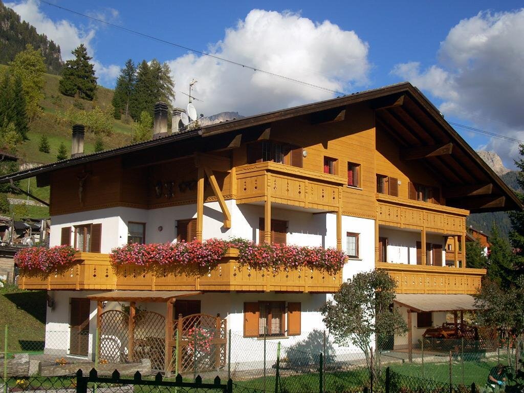 Unser Haus bietet gemütliche Appartements, eingerichtet im ladinischen Stil (Holzmöbel). Die Apartments im Erdgeschoss verfügen über WLAN, Sat-TV, Elektroofen und Mikrowelle, Kaffeepadmaschine, Wasserkocher, Bügeleisen, Waschmaschine und Geschirrspüler, Safe, Haartrockner und eine möblierte Veranda. Es gibt auch ein Skidepot mit Schuhwärmern für die Winterzeit, das im Sommer für Mountainbikes verwendet wird. Das Haus hat einen großen Garten, geeignet für Familien mit Kindern (Liegestühle und Sonnenschirme, Schaukelstuhl, Spielhaus und Schaukel) Panoramalage mit privatem Parkplatz und auf Anfrage werden Bettwäsche, Handtücher und Babybett zur Verfügung gestellt.