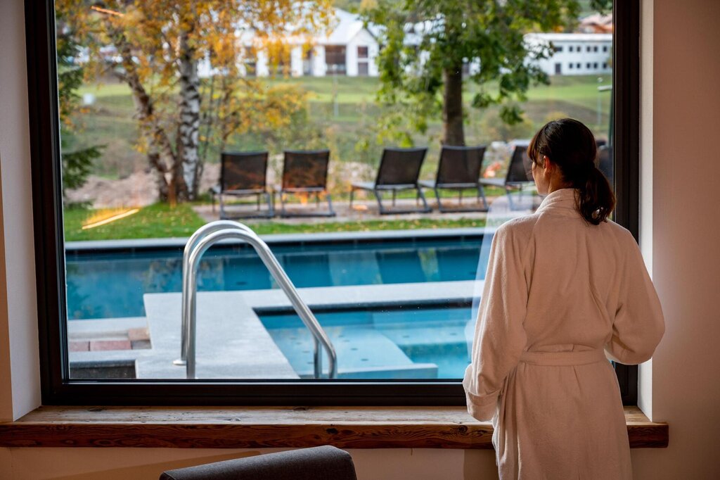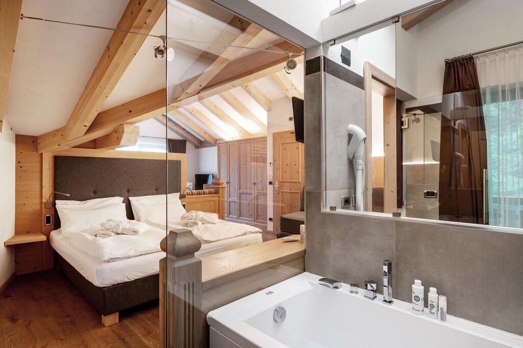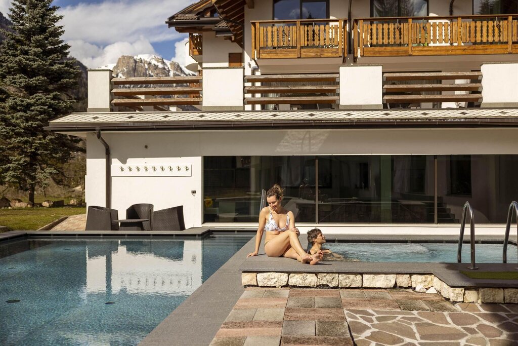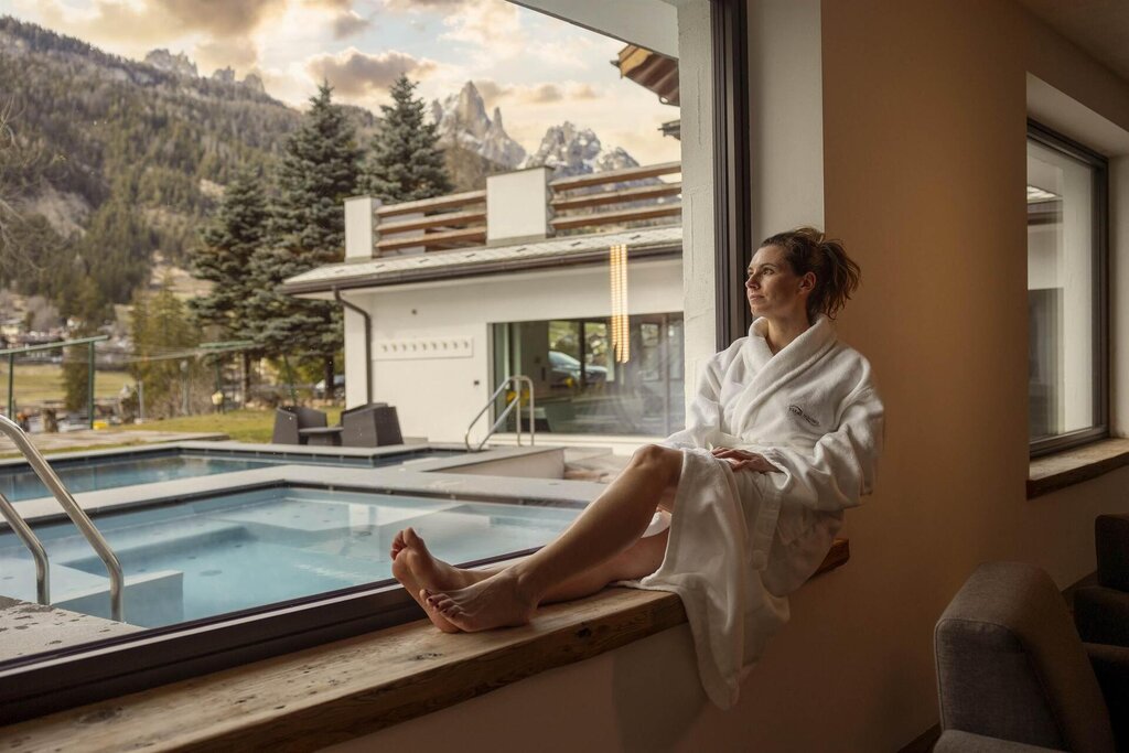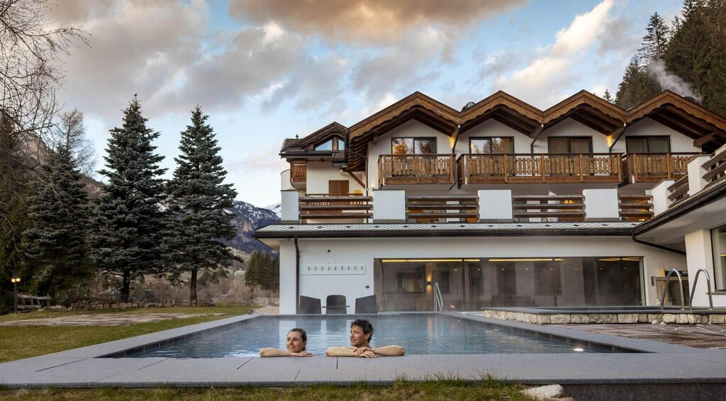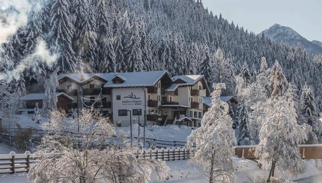 Das Hotel Terme Antico Bagno liegt in einem der schönsten Täler des Trentino: dem Val di Fassa, einem idealen Ort für aktive Wellness im Freien. Man denkt an die unzähligen Skipisten im Winter, die im Sommer zu Wegen und leichten Spaziergängen sowohl im Tal als auch in der Höhe werden. Überall kann man eine Aussicht genießen, die tief in die Seele eindringt.