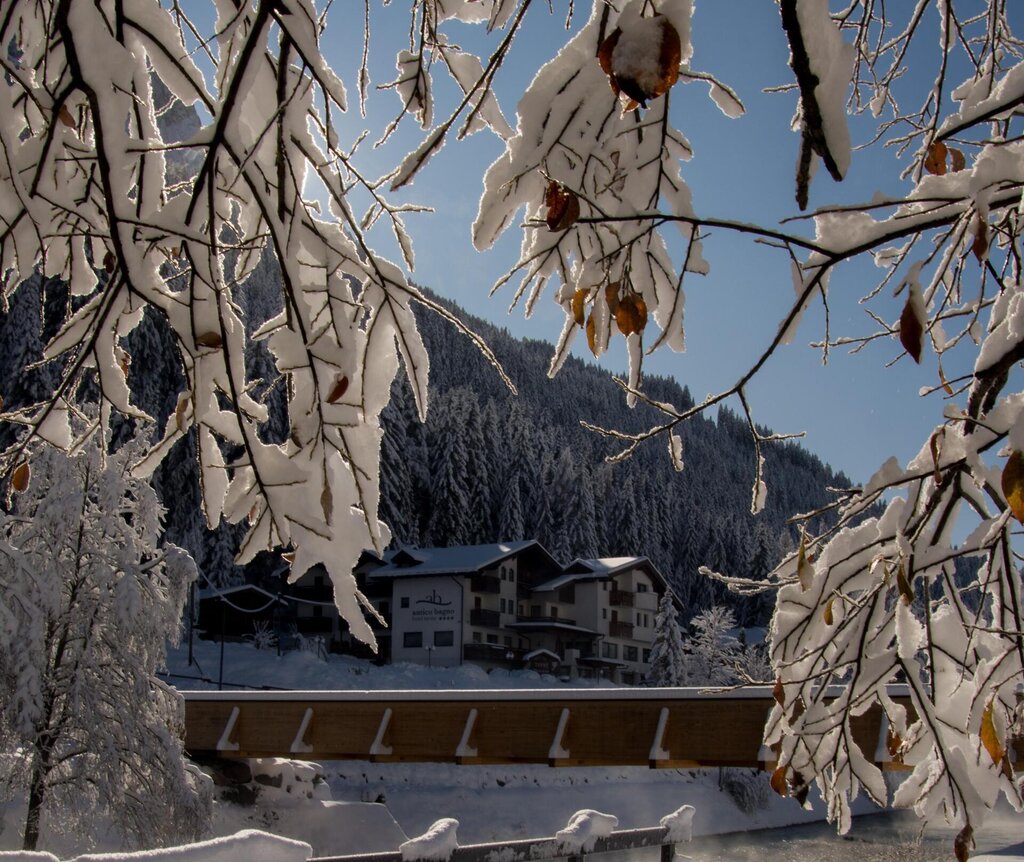 Das Hotel Terme Antico Bagno bietet einen Urlaub im Zeichen des Wohlbefindens im Val di Fassa an. Wir kümmern uns um Ihr Wohlbefinden, indem wir das psycho-physische Gleichgewicht wiederherstellen, dank der Verbindung zwischen dem Hotel Terme Antico Bagno und dem Thermalzentrum "Terme Dolomia". Die Synergie zwischen der Thermalbehandlung,