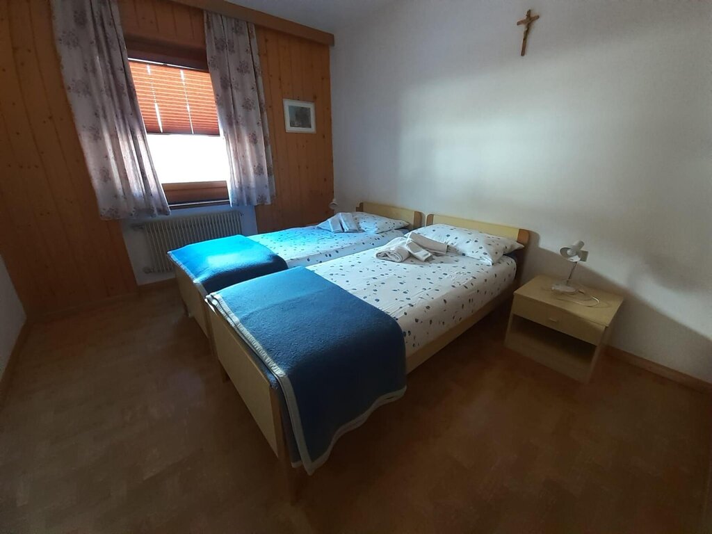 Unsere Wohnung befindet sich in Soraga Alta in einem Gebäude mit vier Wohneinheiten, in einer sonnigen und ruhigen Lage. Die Wohneinheit besteht aus zwei Schlafzimmern, zwei Badezimmern, einem Wohnbereich mit Küche und einem großen Balkon (ausgestattet mit Liegen und einem Wäschetrockner), von dem aus man die gesamte Gruppe des Catinaccio bewundern kann. Die Küche ist mit einem Glaskeramikkochfeld, Mikrowelle und herkömmlichem Ofen, Geschirrspüler, Wasserkocher, Kühlschrank und Gefrierschrank ausgestattet. Zur Verfügung stehen ein Fernseher, Waschmaschine, Bügeleisen, Haartrockner, WLAN-Netz, Skischuhwärmer und ein praktischer Parkplatz außerhalb des Grundstücks.