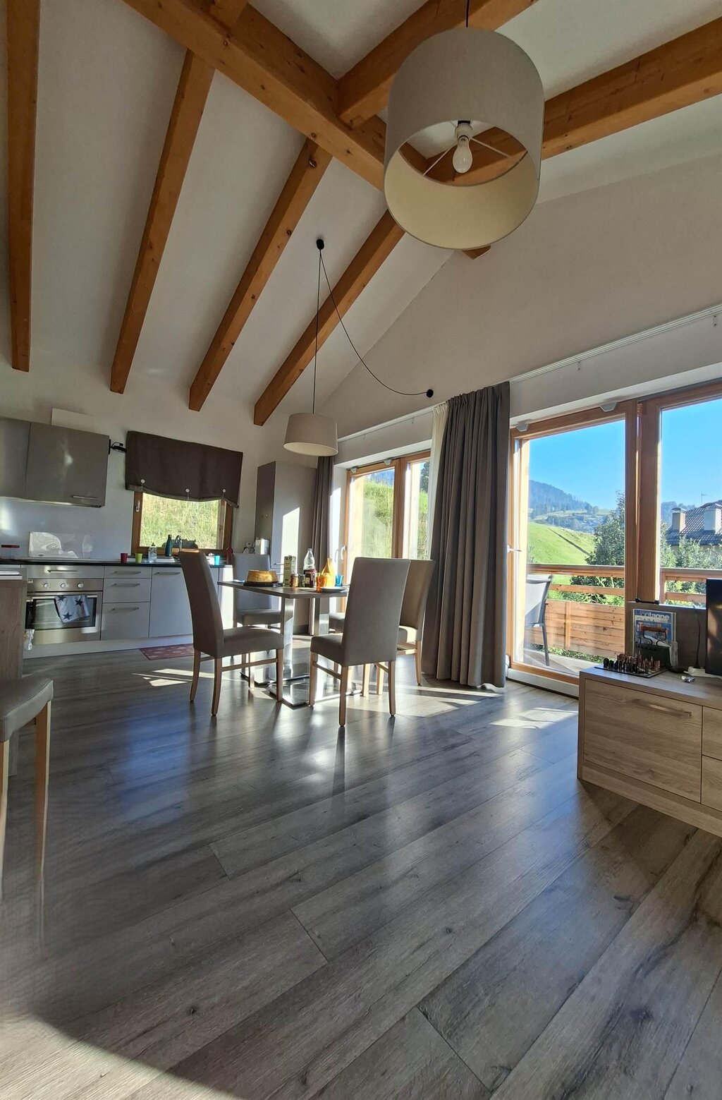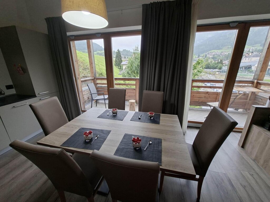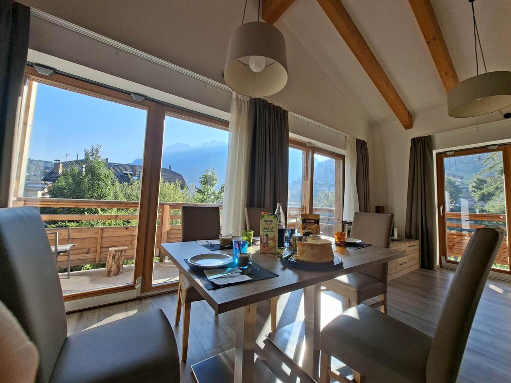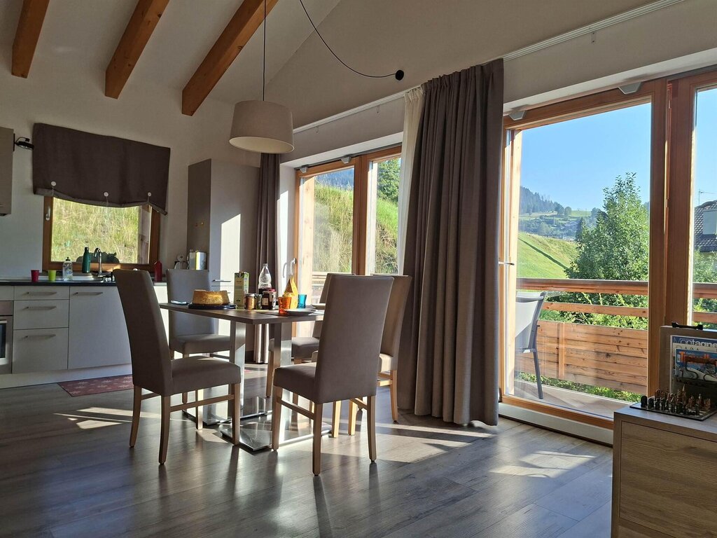 Ein helles und einladendes Penthouse in Moena, im Herzen des Fassatals, ist ideal für alle, die ein komfortables und ruhiges Bergerlebnis mit atemberaubendem Blick auf die Dolomiten suchen. Die Wohnung befindet sich im obersten Stockwerk eines eleganten Gebäudes und bietet durchdachte und harmonische Räumlichkeiten: eine voll ausgestattete Küche, ein helles Wohnzimmer zum Entspannen, zwei geschmackvoll eingerichtete Schlafzimmer und zwei Badezimmer mit Fenstern, eines davon en suite. Das Apartment mit sieben Schlafzimmern (ein Doppelzimmer, ein Dreibettzimmer und eine Doppelschlafcouch im Wohnzimmer) bietet Familien, Paaren oder Freundesgruppen ausreichend Platz und garantiert dabei stets Privatsphäre und Komfort. Von den beiden Panoramabalkonen aus können Sie die Alpenlandschaft von Sonnenaufgang bis Sonnenuntergang genießen und die einzigartige Atmosphäre des Fassatals auf sich wirken lassen. Die Lage ist einer der größten Vorteile der Wohnung. Der Skibus hält direkt vor dem Haus und ermöglicht eine bequeme Anreise zu den wichtigsten Skigebieten des Dolomiti Superski-Gebiets mit Pisten für alle Könnerstufen. Im Sommer gelangt man durch eine einfache Straßenüberquerung auf den Radweg und die Wanderwege des Tals, die zu spektakulären Ausblicken auf Wälder, Almen und hochalpine Straßen führen. Moena, die „Fee der Dolomiten“, bezaubert mit ihrem eleganten Ortskern, ladinischen Traditionen, traditionellen Konditoreien und Restaurants, die Knödel, Polenta, Bergkäse und traditionelle Desserts servieren. Die Nähe zu Sehenswürdigkeiten wie dem San-Pellegrino-Pass, dem Karersee, dem Catinaccio und dem Latemargebirge ermöglicht unvergessliche Erlebnisse zu jeder Jahreszeit.