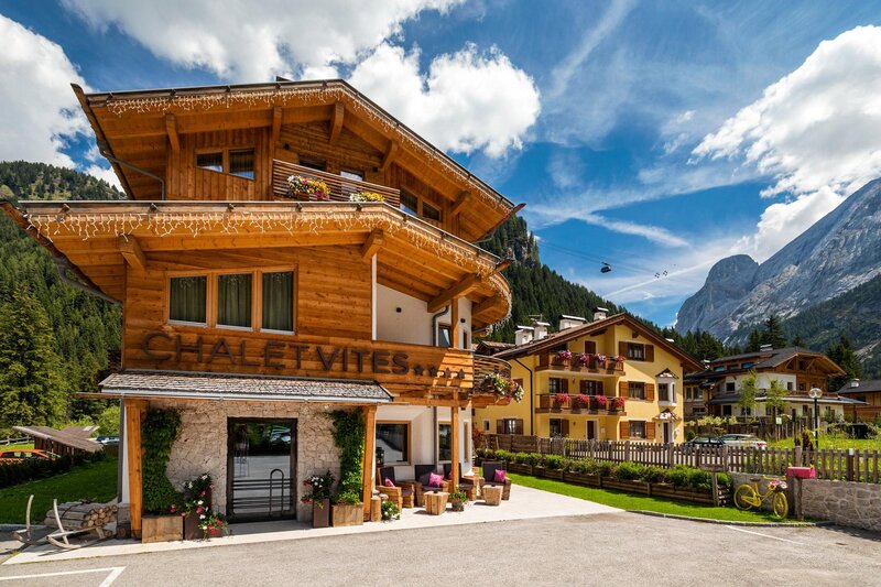 Featuring free wellness facilities, Chalet Vites Mountain Hotel is a modern 4-star property that opened in 2012. Located in Alba di Canazei, it is only 150 meters from the Alba-Col dei Rossi ski lift. The rooms are furnished in a contemporary style, with parquet floors and a flat-screen TV. They offer free Wi-Fi and a balcony with mountain views. An Italian breakfast is served every morning and the bar is open all day and offers drinks and snacks. You are welcome to relax in the wellness area, which includes a sauna, steam bath and sensory showers. Chalet Vites offers free parking and is located right next to the ski bus stop for the Belevdere-Canazei slopes. 100 meters away is a public park with a playground and sports hall, while 200 meters away is the Ciampac and Funifor Alba - Col dei Rossi ski lifts.