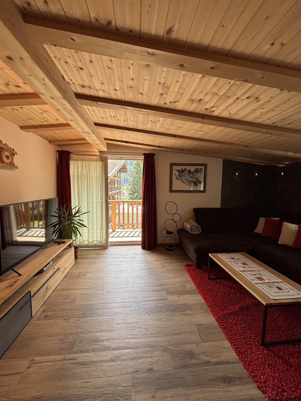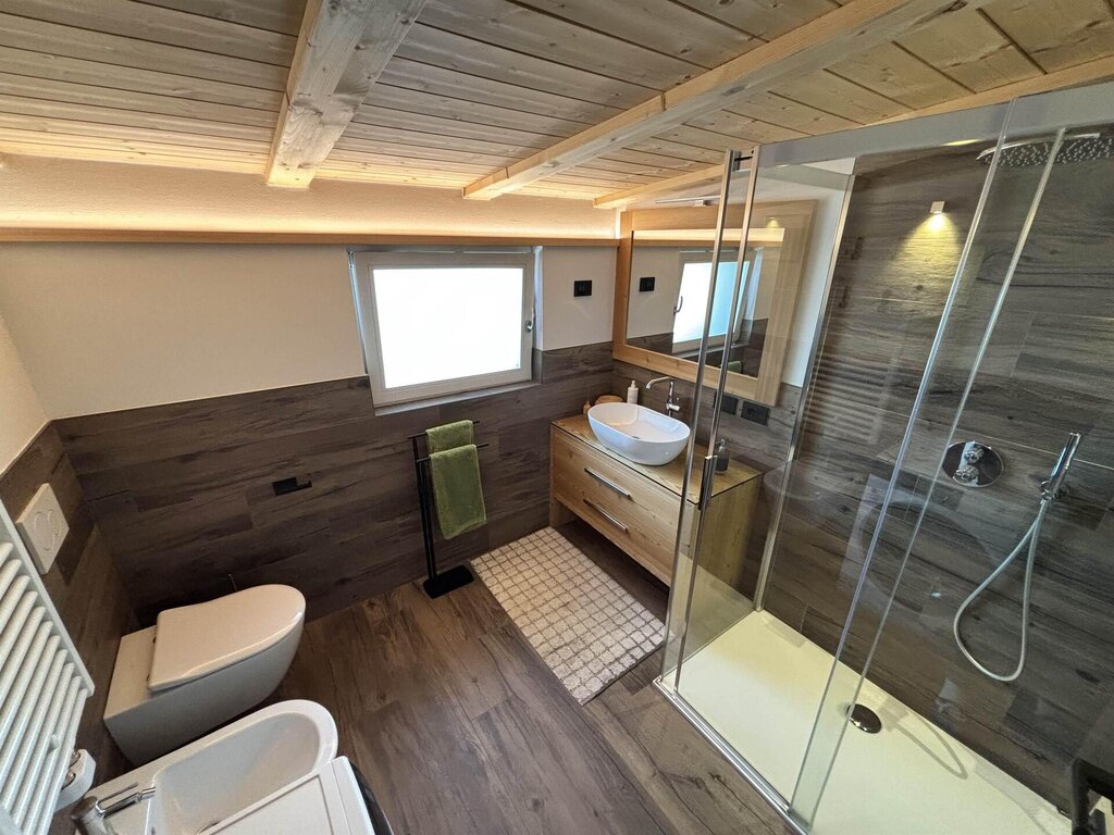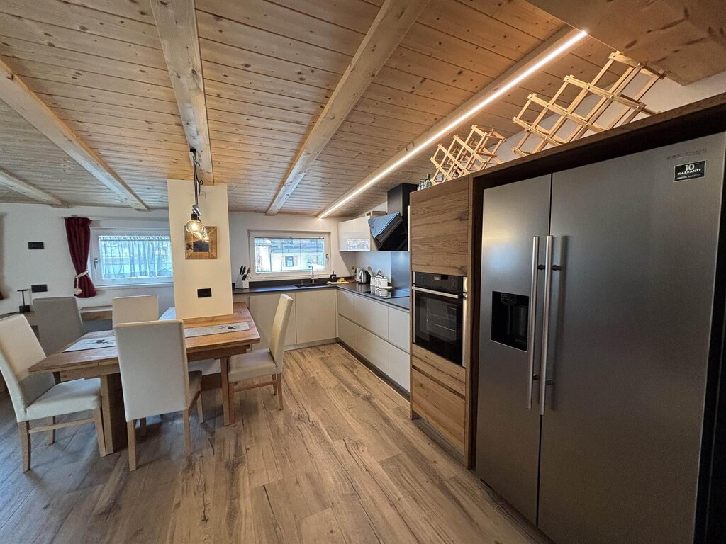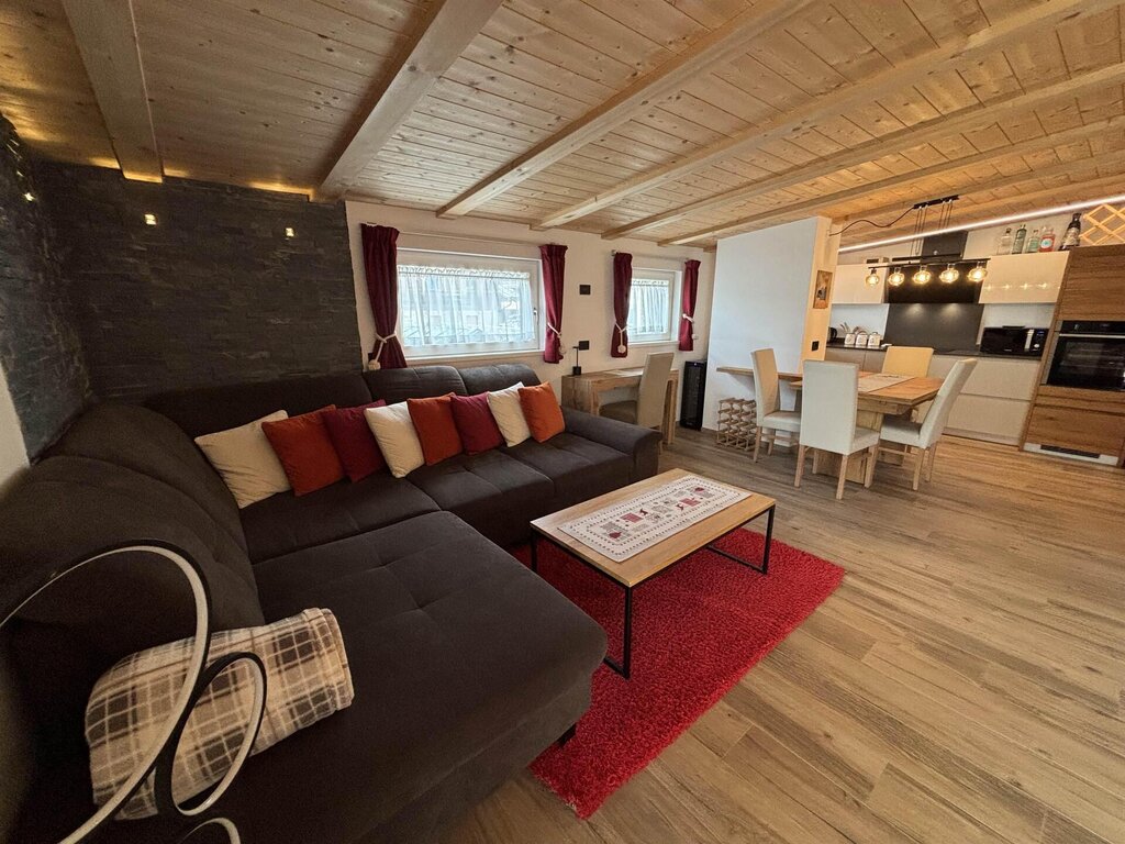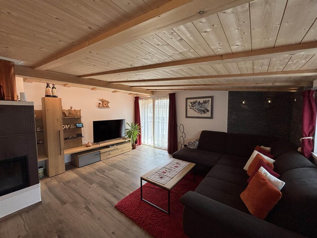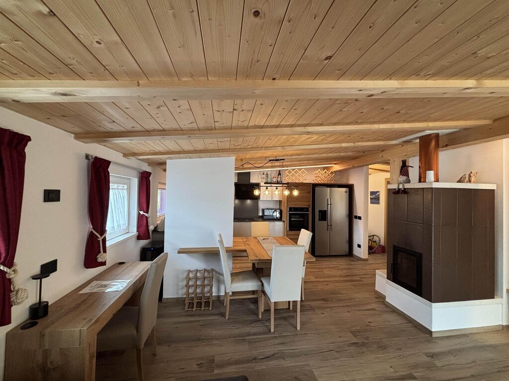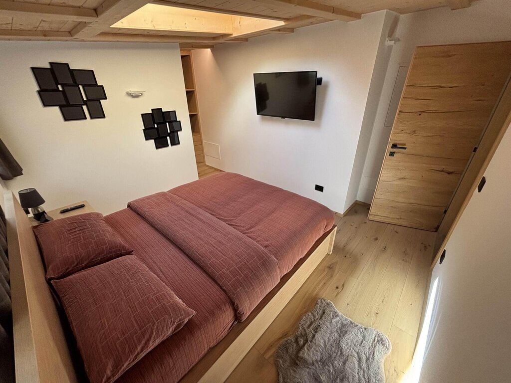 Cima12 Apartment (80 sqm) is located in Pozza di Fassa, a great starting point for winter hikes, just a few steps from the bus and Skibus stop and only a 5-minute walk from the QC Terme Dolomiti spa, as well as from the main restaurants and the Conad supermarket. The Buffaure-Ciampac ski area (which, thanks to the connection with the Dolèda Funifor lift, directly links to the Sellaronda circuit) is 1 km away and can be reached either by car or via the Skibus (with a stop just a few meters from the apartment). Located in the attic, recently built, and finely furnished in wood following the Dolomite style. Very quiet and bright, with a warm and intimate atmosphere, it is the ideal choice for couples of friends or families looking for maximum comfort. It features: Double bedroom with memory foam mattress and 43” Smart LED TV facing the bed Twin bedroom with two single beds and a desk Bathroom with large crystal shower and rain shower head, equipped with washing machine Living room with 55” Smart LED TV and traditional Ladin stove Fully equipped open-plan kitchen with dishwasher, oven, microwave, 4-burner induction cooktop, double-door American fridge with cold water dispenser and ice maker Small balcony with a view of Cima12 Independent boiler Underfloor heating Oak parquet flooring in the bedrooms and porcelain stoneware flooring in the living area and bathroom Fully wooden ceiling with exposed beams Velux skylights in the rooms for additional light Adjustable lighting system to create a relaxing atmosphere WiFi Internet throughout the apartment 1 parking space Non-smoking apartment