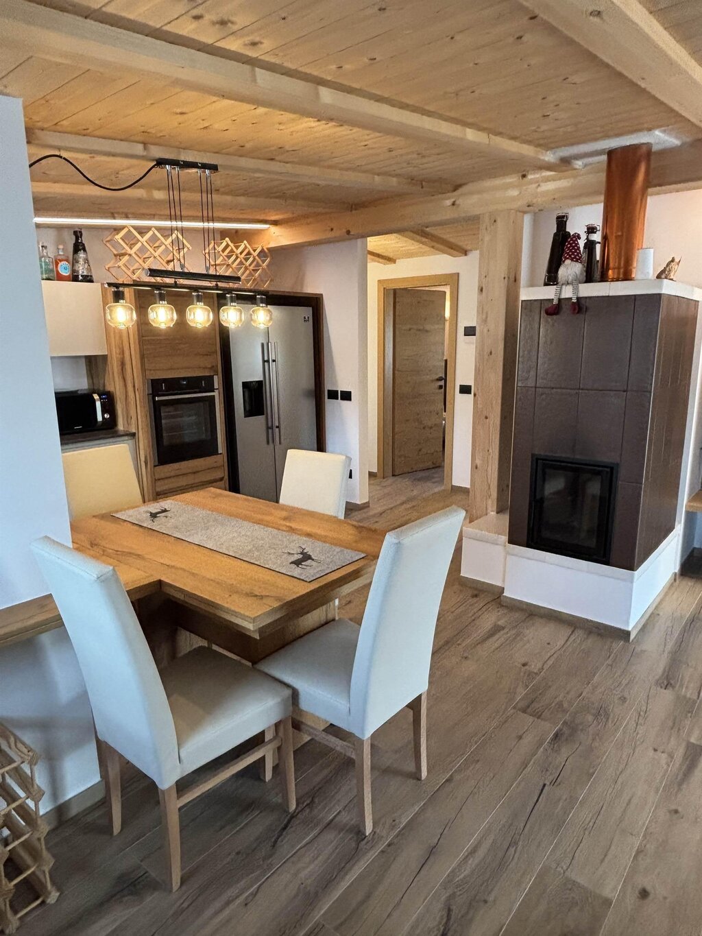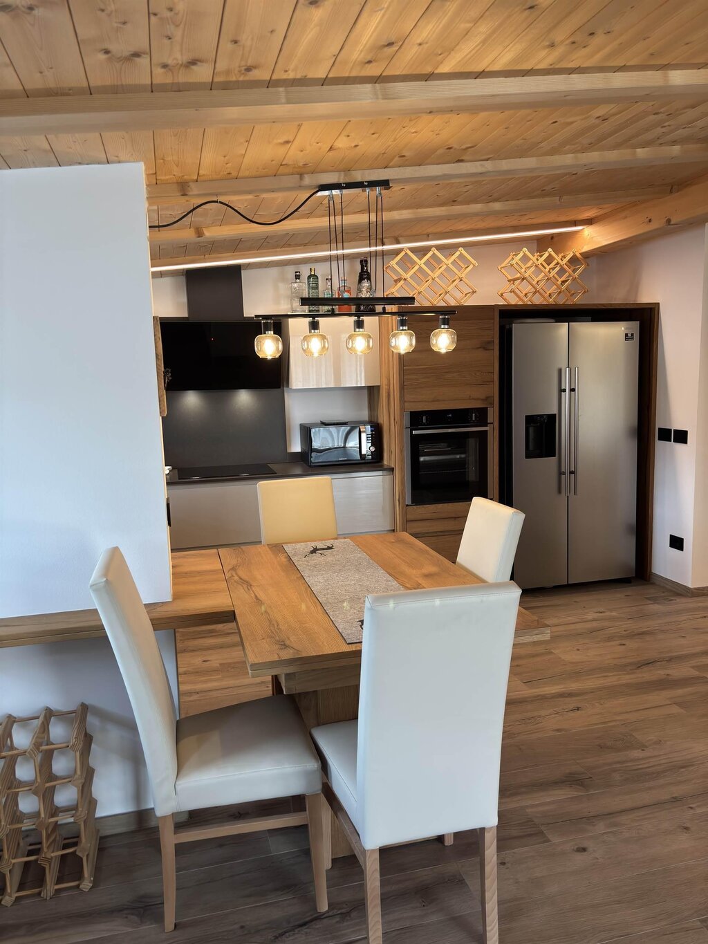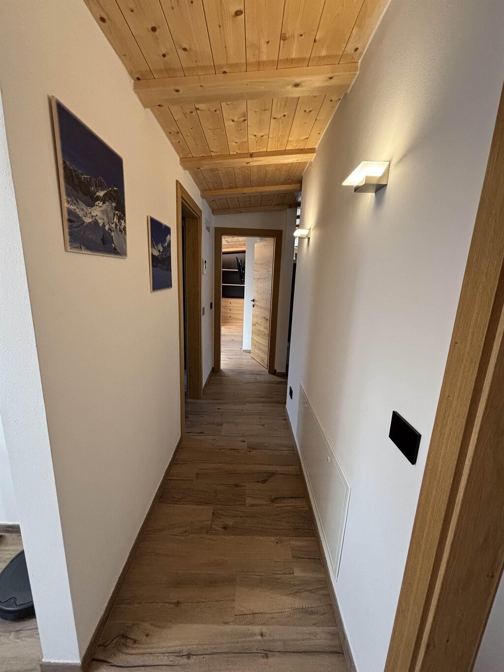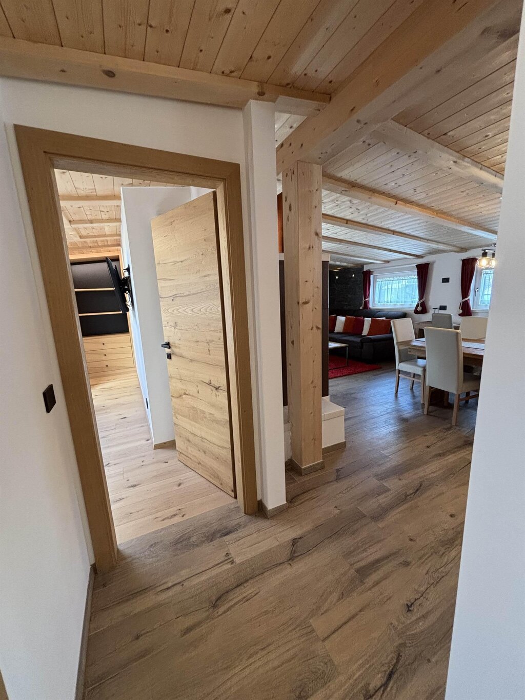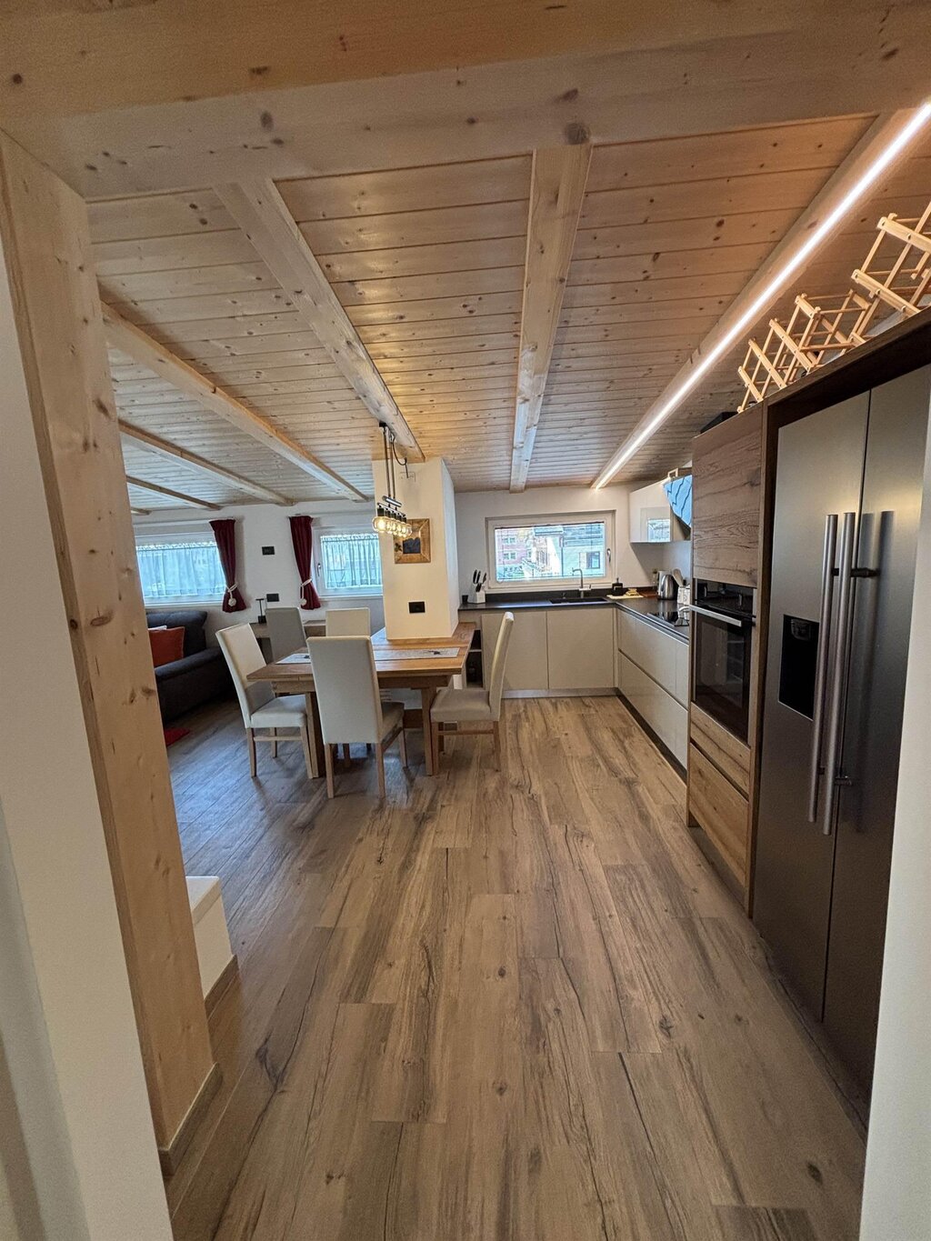Cima12 Apartment (80 sqm) is located in Pozza di Fassa, a great starting point for winter hikes, just a few steps from the bus and Skibus stop and only a 5-minute walk from the QC Terme Dolomiti spa, as well as from the main restaurants and the Conad supermarket. The Buffaure-Ciampac ski area (which, thanks to the connection with the Dolèda Funifor lift, directly links to the Sellaronda circuit) is 1 km away and can be reached either by car or via the Skibus (with a stop just a few meters from the apartment). Located in the attic, recently built, and finely furnished in wood following the Dolomite style. Very quiet and bright, with a warm and intimate atmosphere, it is the ideal choice for couples of friends or families looking for maximum comfort. It features: Double bedroom with memory foam mattress and 43” Smart LED TV facing the bed Twin bedroom with two single beds and a desk Bathroom with large crystal shower and rain shower head, equipped with washing machine Living room with 55” Smart LED TV and traditional Ladin stove Fully equipped open-plan kitchen with dishwasher, oven, microwave, 4-burner induction cooktop, double-door American fridge with cold water dispenser and ice maker Small balcony with a view of Cima12 Independent boiler Underfloor heating Oak parquet flooring in the bedrooms and porcelain stoneware flooring in the living area and bathroom Fully wooden ceiling with exposed beams Velux skylights in the rooms for additional light Adjustable lighting system to create a relaxing atmosphere WiFi Internet throughout the apartment 1 parking space Non-smoking apartment