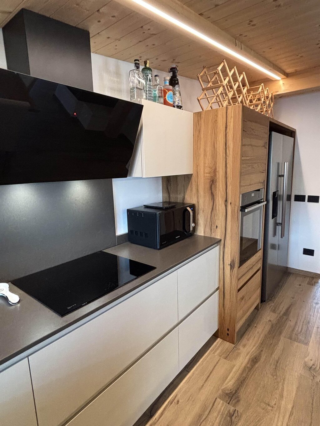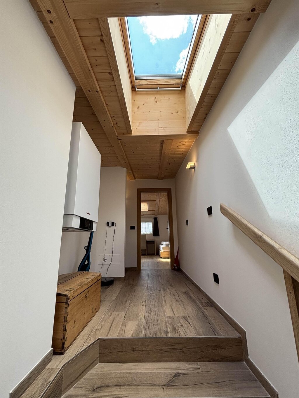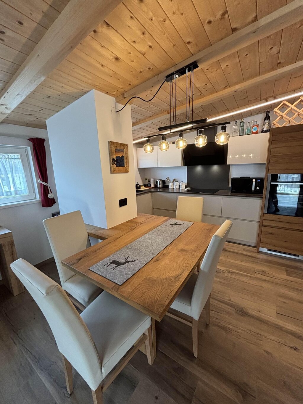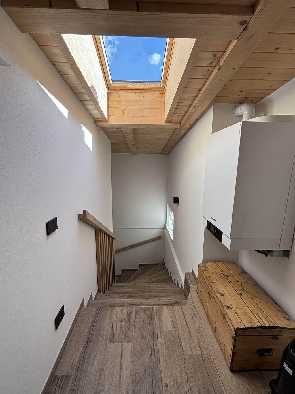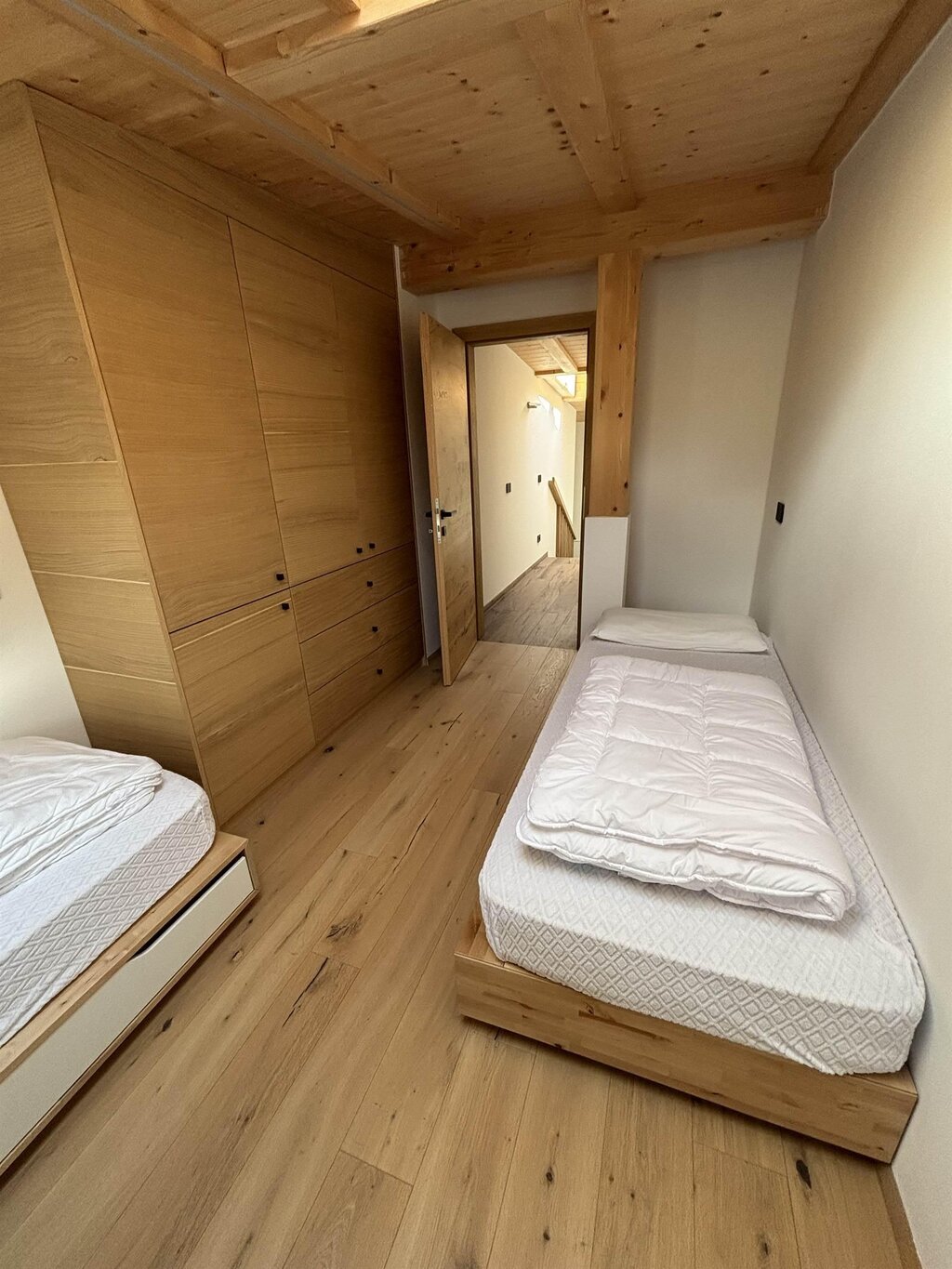 Cima12 Apartment (80 sqm) is located in Pozza di Fassa, a great starting point for winter hikes, just a few steps from the bus and Skibus stop and only a 5-minute walk from the QC Terme Dolomiti spa, as well as from the main restaurants and the Conad supermarket. The Buffaure-Ciampac ski area (which, thanks to the connection with the Dolèda Funifor lift, directly links to the Sellaronda circuit) is 1 km away and can be reached either by car or via the Skibus (with a stop just a few meters from the apartment). Located in the attic, recently built, and finely furnished in wood following the Dolomite style. Very quiet and bright, with a warm and intimate atmosphere, it is the ideal choice for couples of friends or families looking for maximum comfort. It features: Double bedroom with memory foam mattress and 43” Smart LED TV facing the bed Twin bedroom with two single beds and a desk Bathroom with large crystal shower and rain shower head, equipped with washing machine Living room with 55” Smart LED TV and traditional Ladin stove Fully equipped open-plan kitchen with dishwasher, oven, microwave, 4-burner induction cooktop, double-door American fridge with cold water dispenser and ice maker Small balcony with a view of Cima12 Independent boiler Underfloor heating Oak parquet flooring in the bedrooms and porcelain stoneware flooring in the living area and bathroom Fully wooden ceiling with exposed beams Velux skylights in the rooms for additional light Adjustable lighting system to create a relaxing atmosphere WiFi Internet throughout the apartment 1 parking space Non-smoking apartment