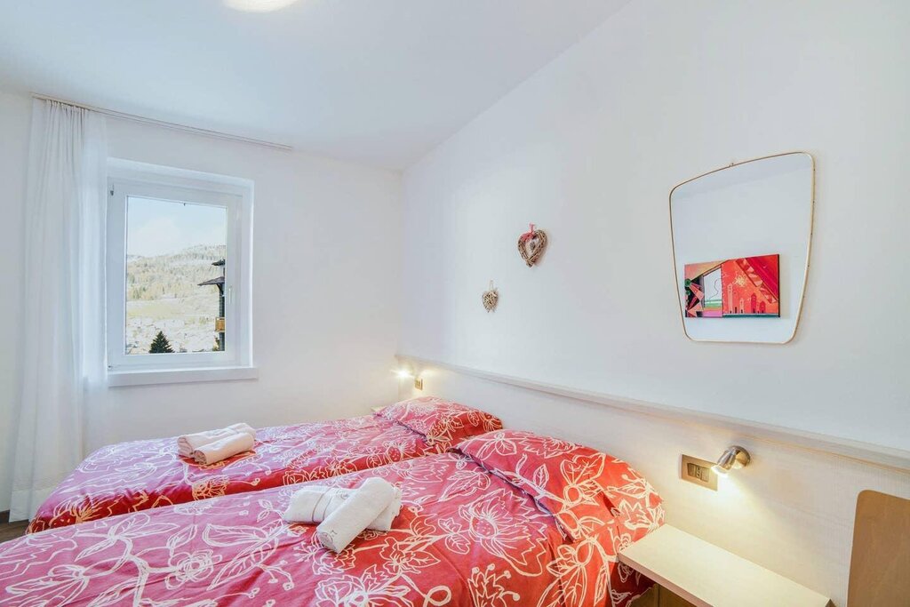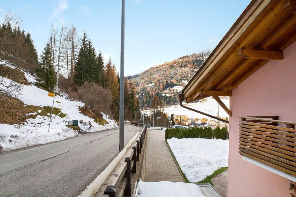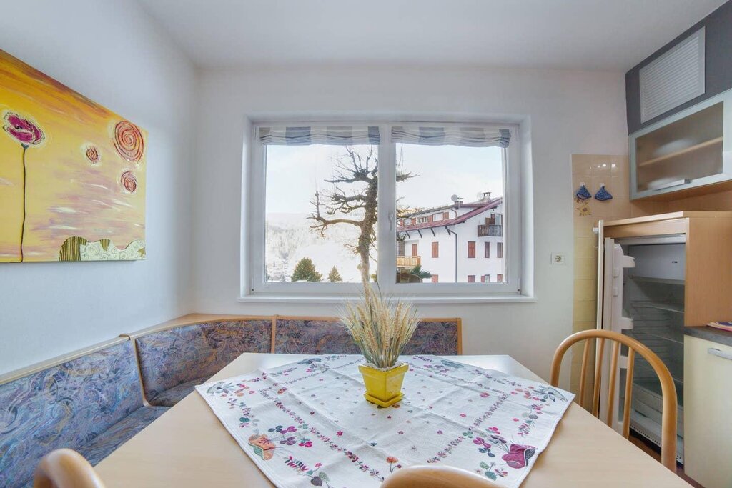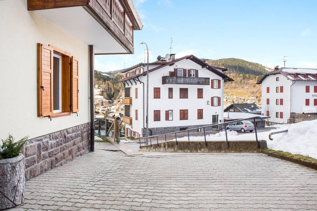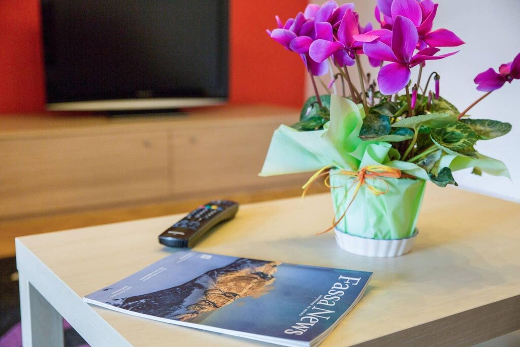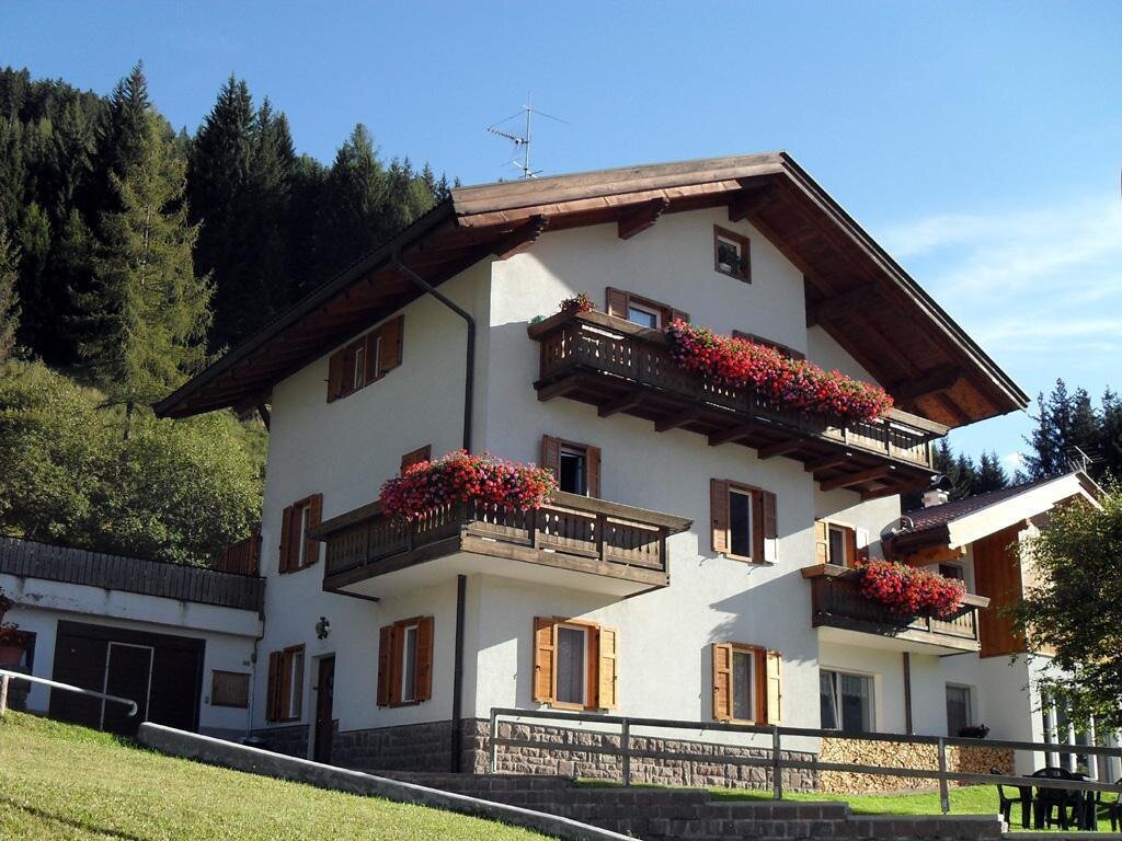 The spacious apartment “Villa Pineta” is located on the ground floor of a beautiful house in Moena and boasts a mountain view. The property consists of a living room, a well-equipped kitchen with a dishwasher, 3 bedrooms (one with one single bed and one with 2 single beds each) as well as one bathroom and can therefore accommodate 5 people. Additional amenities include Wi-Fi,