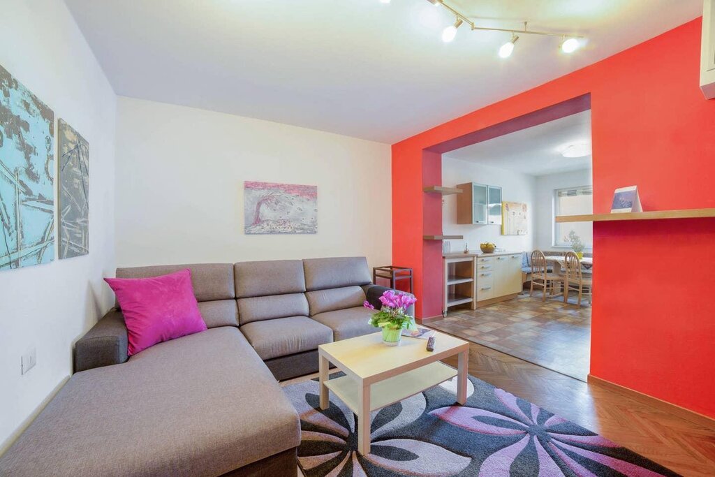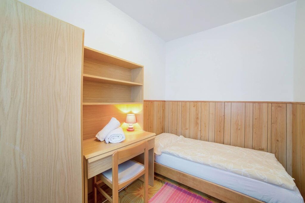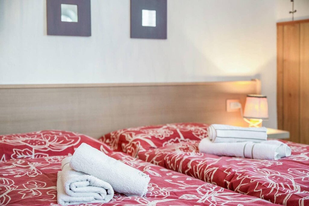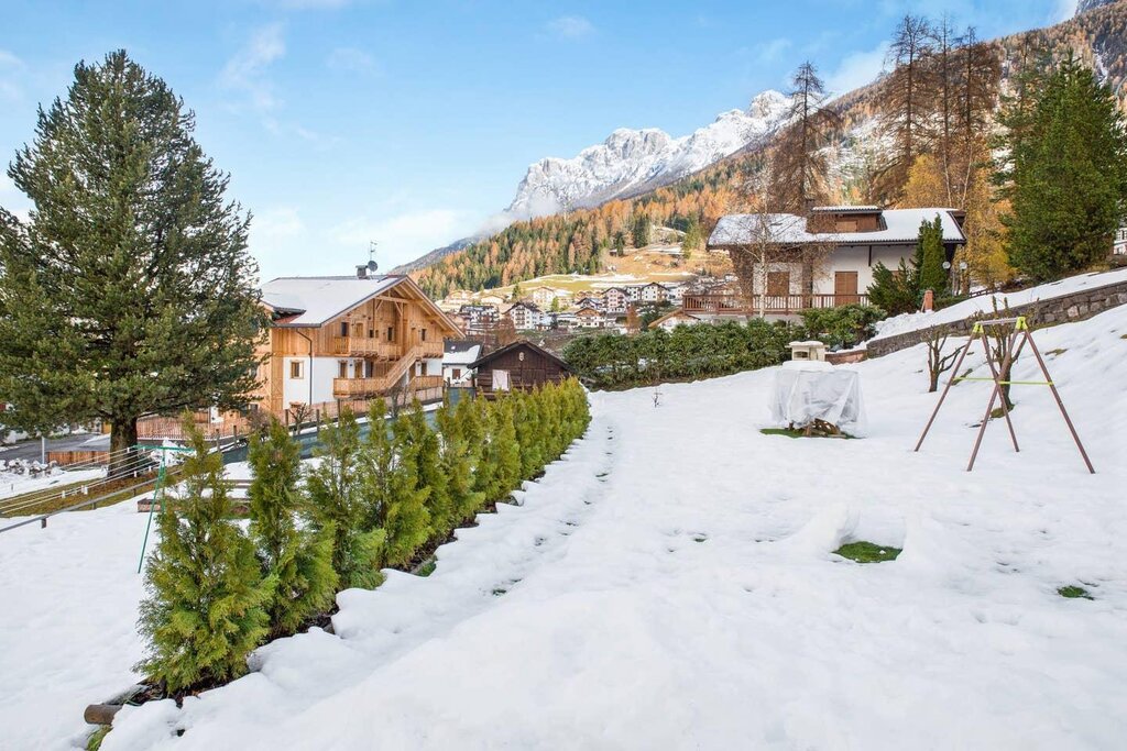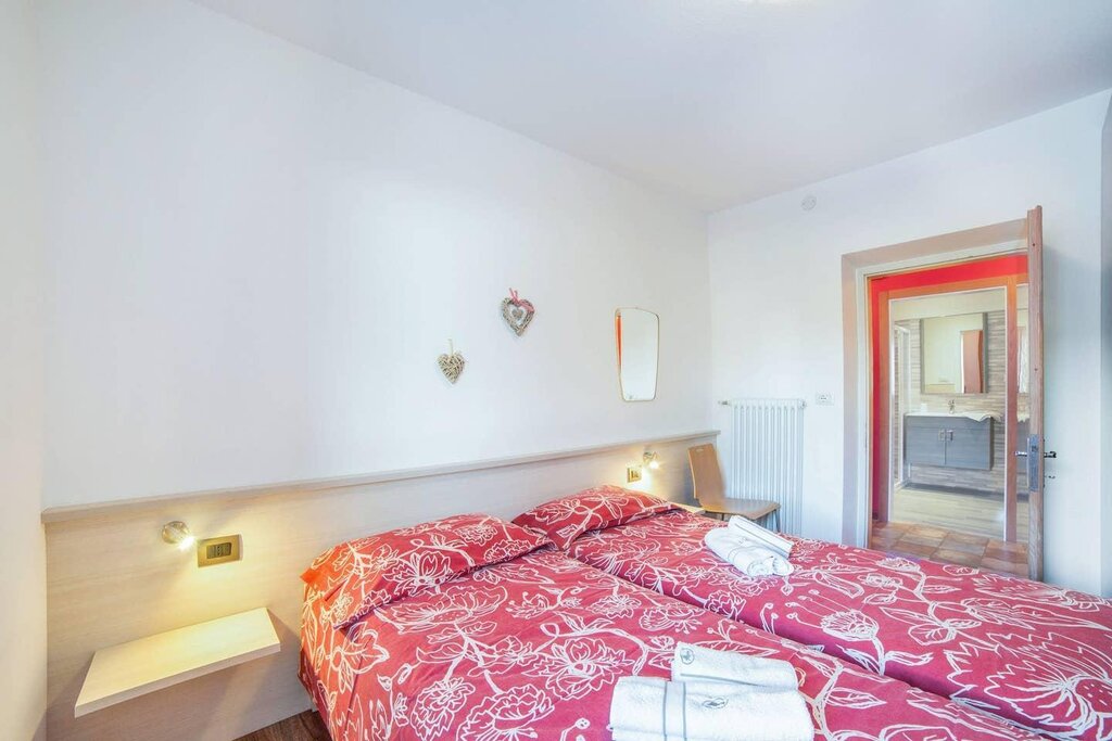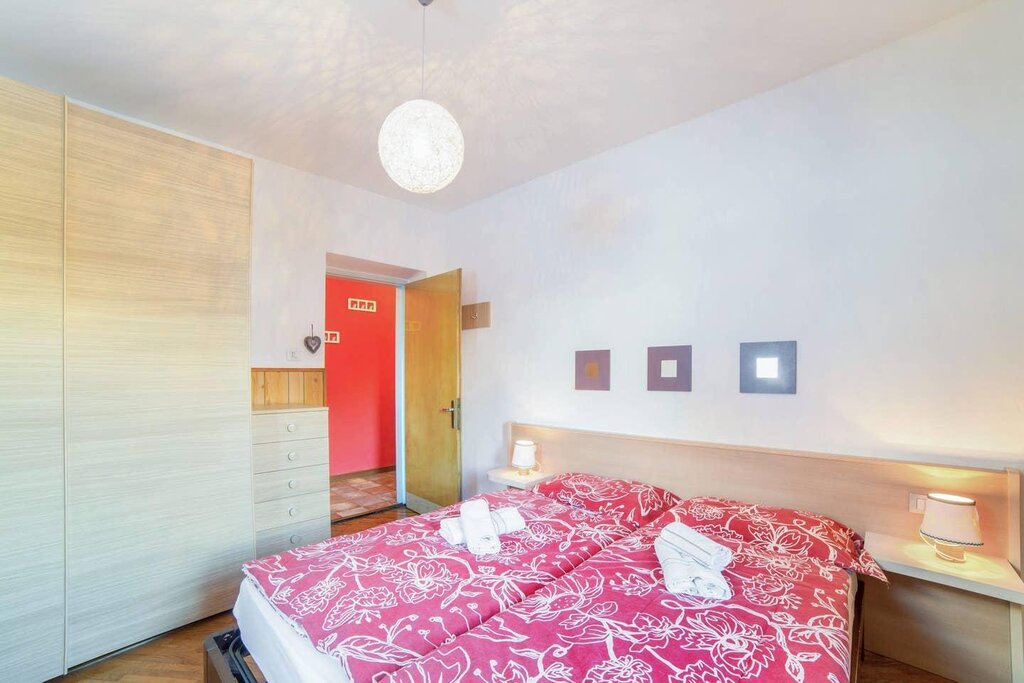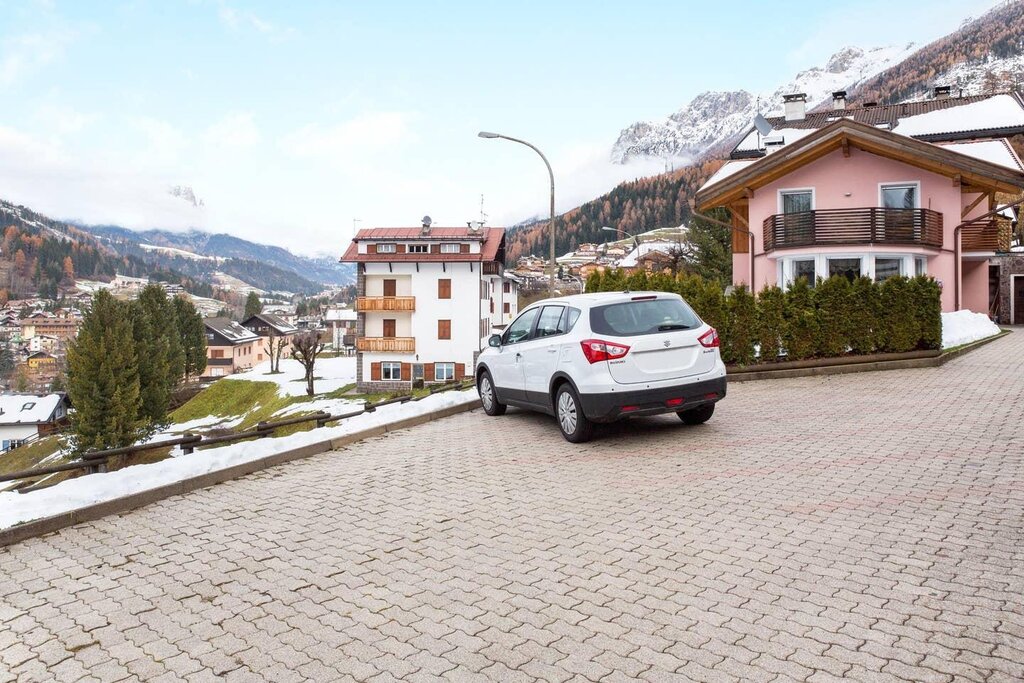 The spacious apartment “Villa Pineta” is located on the ground floor of a beautiful house in Moena and boasts a mountain view. The property consists of a living room, a well-equipped kitchen with a dishwasher, 3 bedrooms (one with one single bed and one with 2 single beds each) as well as one bathroom and can therefore accommodate 5 people. Additional amenities include Wi-Fi,