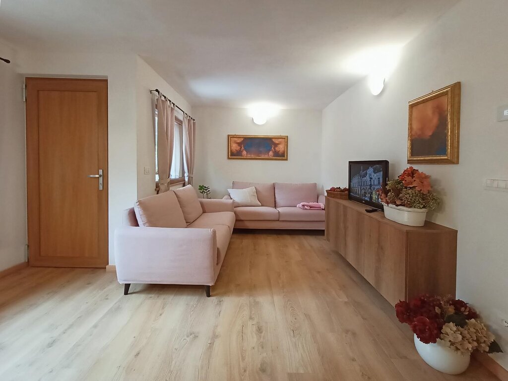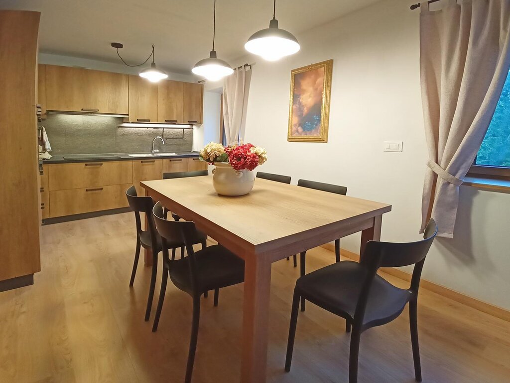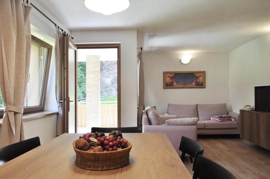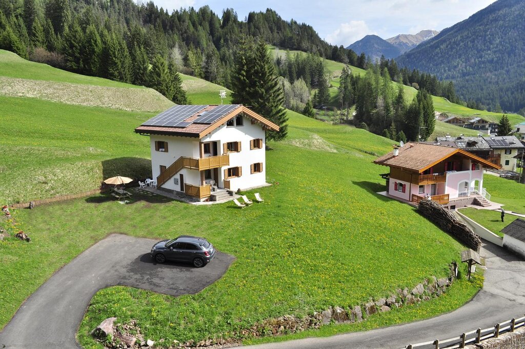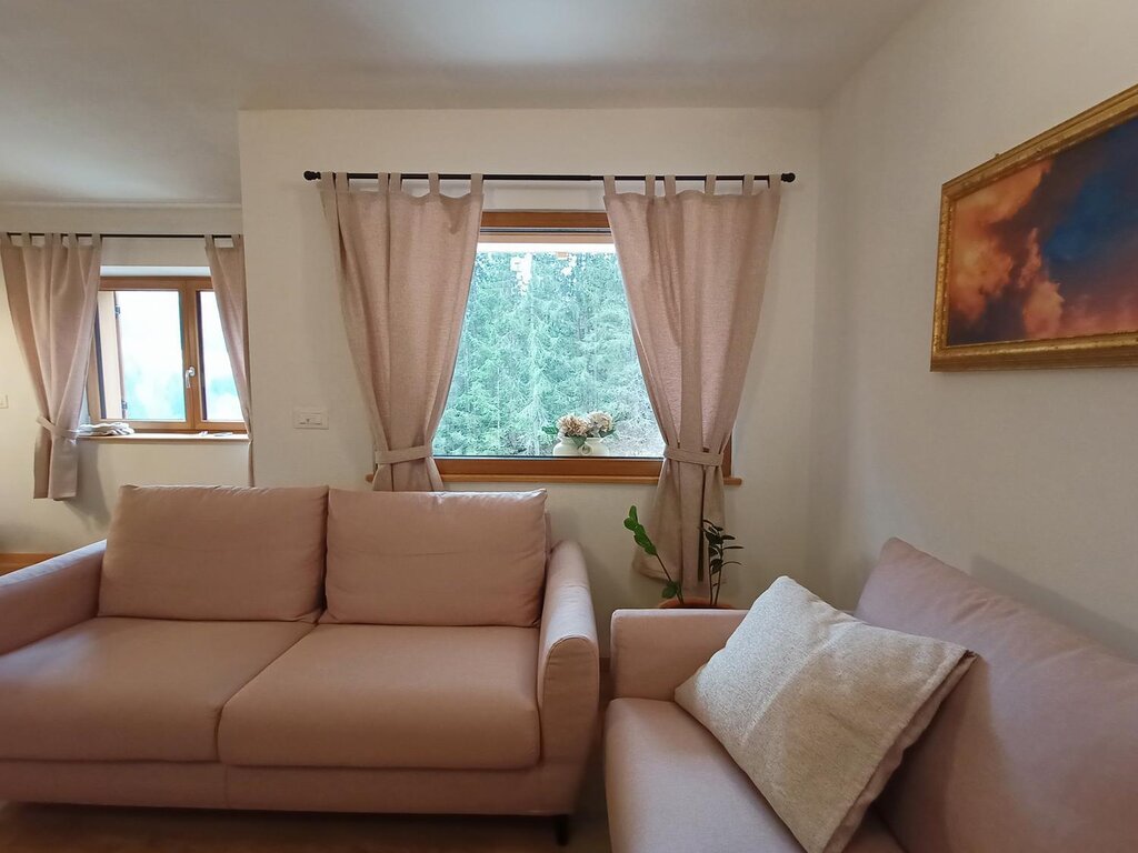A house set in the valley, a window from which to observe the silent mountains, the wild pine forests and the verdant meadows. This is "Ciasa Modestina", a house perfectly integrated into the surrounding environment to allow you to live an experience of peace and serenity at 1250 meters. The calls of eagles and hawks, the shaking of stems and branches of pines moved by the wind .. these are the voices and sounds that will accompany your stay at "Ciasa Modestina" to allow you to grasp the authentic spirit that inhabits the mountains in all the moments of relaxation that you want to enjoy in the house. The apartment has a clean and essential soul in the interior furnishings,