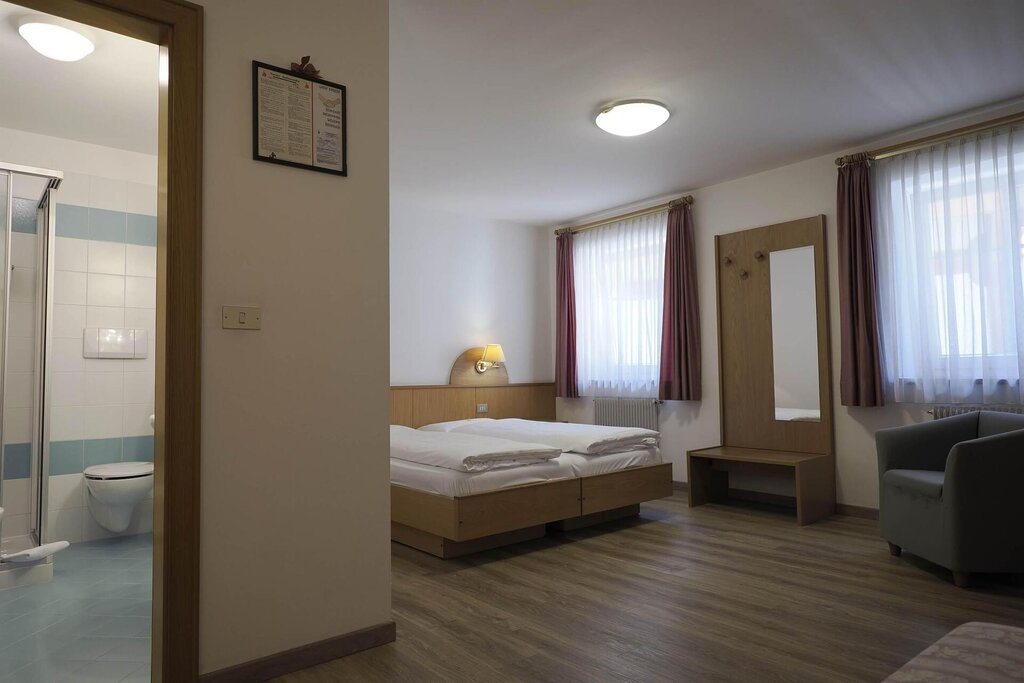 Garni Patrizia offers overnight stay in the modern confortable rooms with bathroom gifted with hairdryer, television, radio, telephon and safe-deposit box. The breackfast consist in a pleasant buffet in a characteristic breackfast room. The bar, leavingroom, ski-room equipment and parking place compleat our winter-summer offer. If you want to come you'll be welcome! We are opened the whole year!