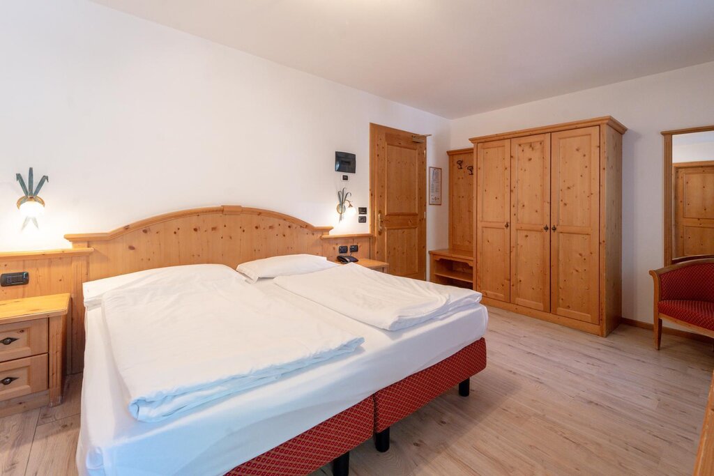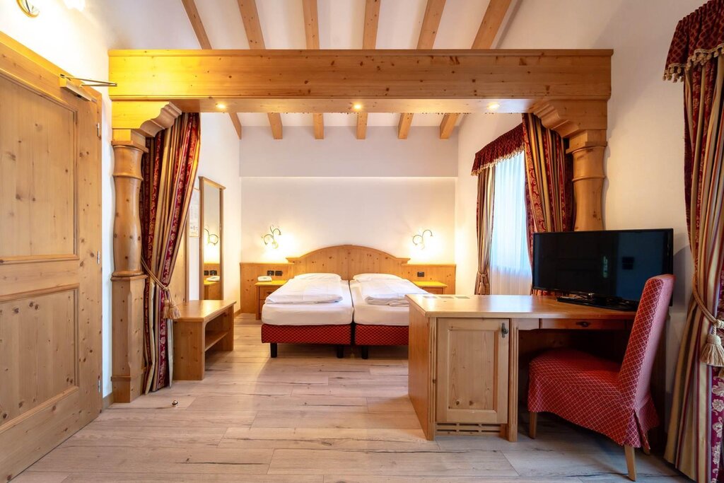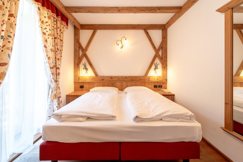 Located in the center, completely renovated. It features comfortable elegant rooms, large dining spaces and an exclusive dining room for hotel guests. It has a cozy pine wood pub for celebrations. The quiet rooms, most of which featuring balconies or terraces, are equipped with private bathrooms, hairdryers, telephones, Internet connections, Sat-TV, radios, safes and minibars. Pleasant and relaxing wellness center. Excellent local cuisine. Garage.