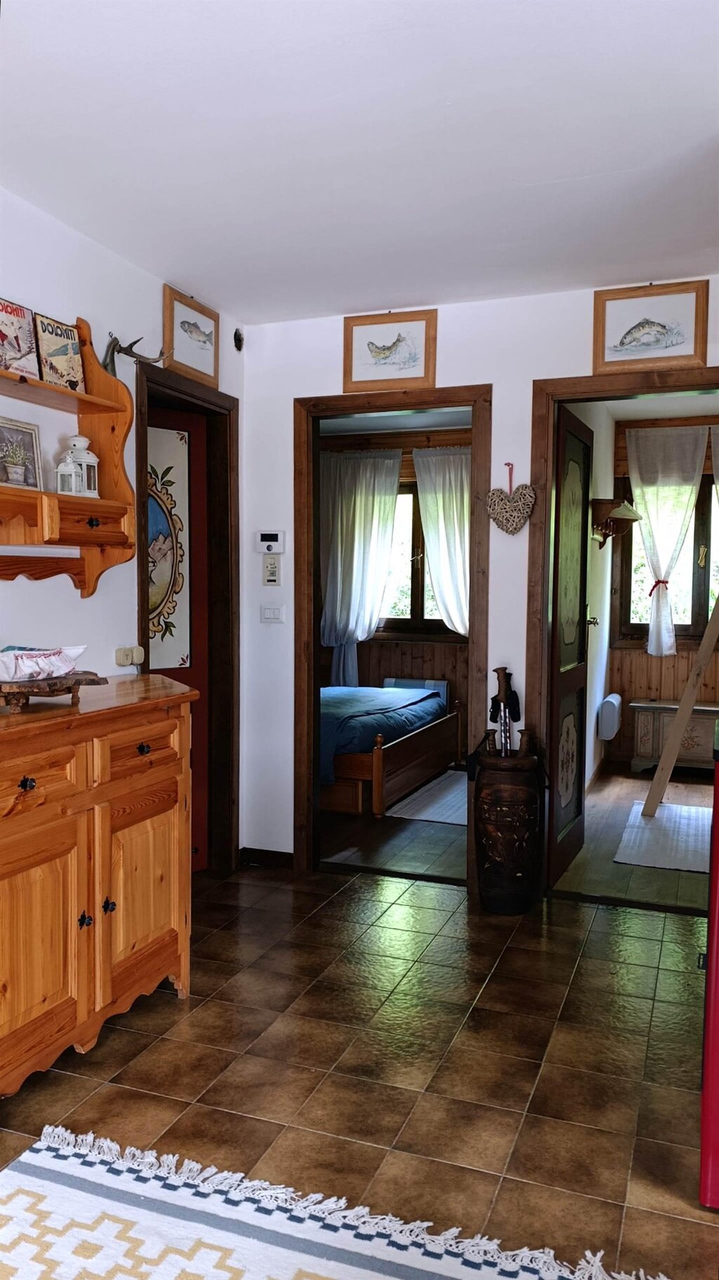 The Residence Col de Lyn is located in a quiet and sunny position about 3 minutes walk from the center of Campitello, away from the traffic of the Provincial Road: the terrace dominates the view of the village and allows you to experience the silence of the mountain with a splendid panorama. It has a convenient covered car park with lift. The apartment is comfortable and welcoming; the rooms are equipped with good capacity and very functional wardrobes (a bedroom with a double bed and a bedroom with a bunk bed with side). The kitchenette is fully equipped: induction hob, fridge, freezer, microwave oven, kettle, toaster, dishwasher; the bathroom is equipped with shower, hairdryer and washing machine. There is a dehumidifier and a pellet stove. Electric heating. Duvets, blankets, sheets and linen for bathrooms and kitchens.