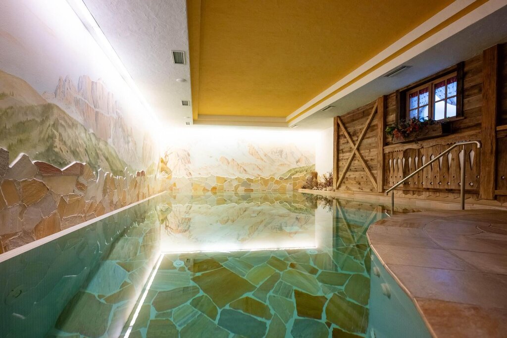 The Chenina Wellness area in the Val di Fassa, as the legend depicted on the walls of the center shows, is dedicated to a Ladin princess and a love story...