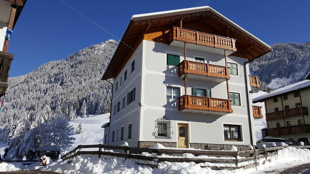 The Pescol apartments are in Pozza di Fassa, a well-known summer and winter tourist destination, located in the center of the valley, in the heart of the Dolomites. The house is immersed in greenery, situated in a quiet and sunny location, away from the traffic of the town center; in winter, the ski lifts are just a short distance away and can be reached on foot. Behind the house, there is a cross-country ski loop, while a 5-minute walk takes you to the daytime and nighttime ski slopes of the Alloch ski stadium, and nearby is the Buffaure/Ciampac ski area connected to the Sellaronda. Our apartments are fully furnished and equipped with every comfort. We wish our guests a pleasant stay!