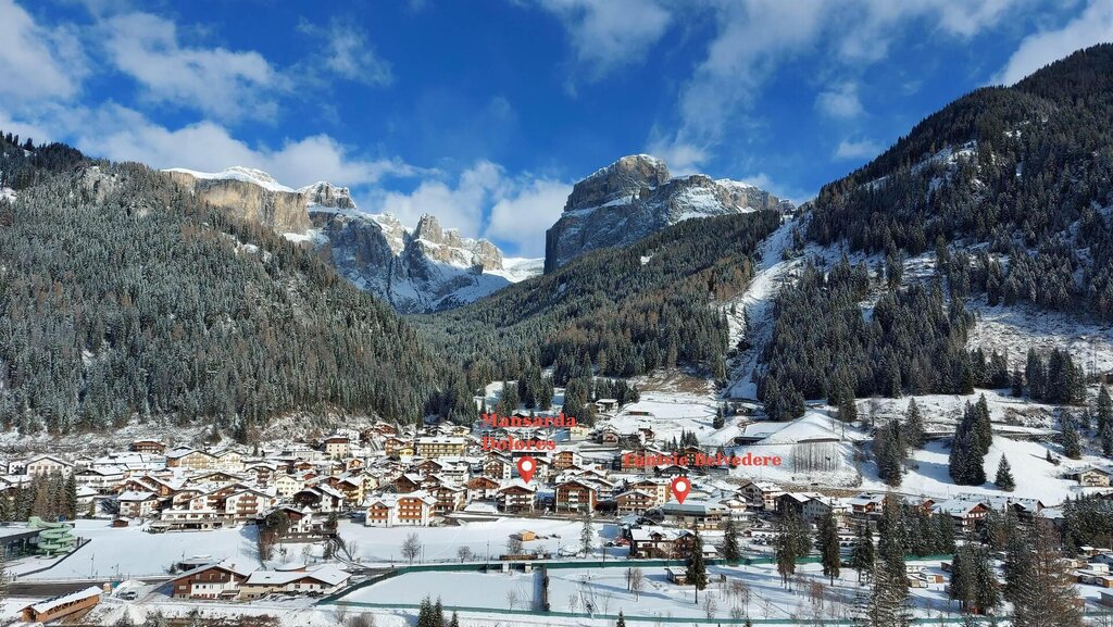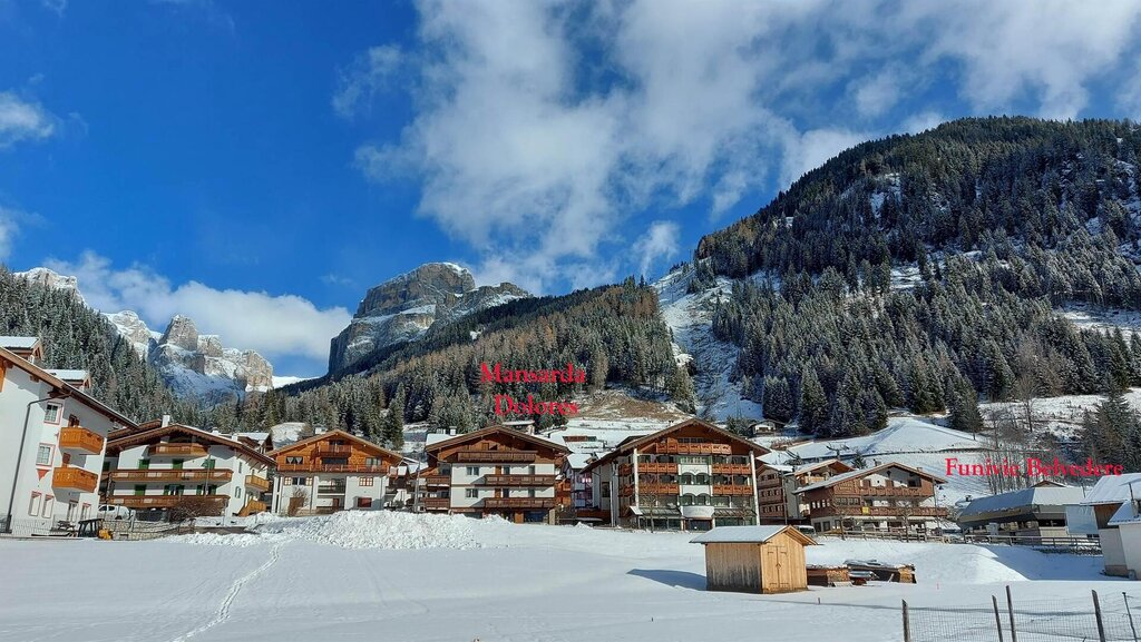 Attic apartment in Canazei with spectacular views of the Dolomites. Mail: planchensteinerp@gmail.com This property offers an enviable location in Canazei next to the Belvedere cable car. Located in Streda de Pareda 51, the three-room apartment of 50 square meters, on the third floor without lift, can accommodate four people and consists of an entrance hall, two bedrooms, one with a double bed and one with two single beds, a living room with a kitchen, bathroom and two balconies. The attic also has wifi, washing machine, hairdryer, vacuum cleaner, fridge with freezer, induction plates, dishwasher, oven, microwave and TV. The apartment is also equipped with an outdoor parking space and ski locker.
