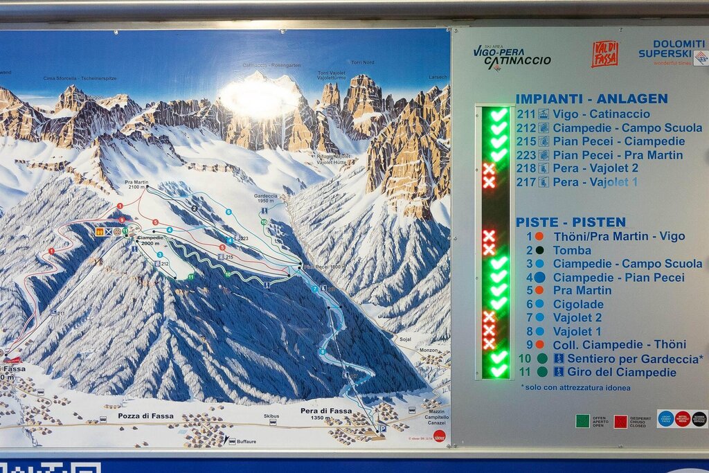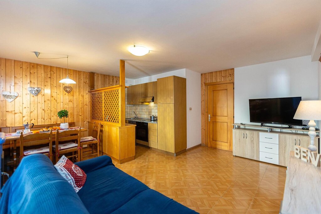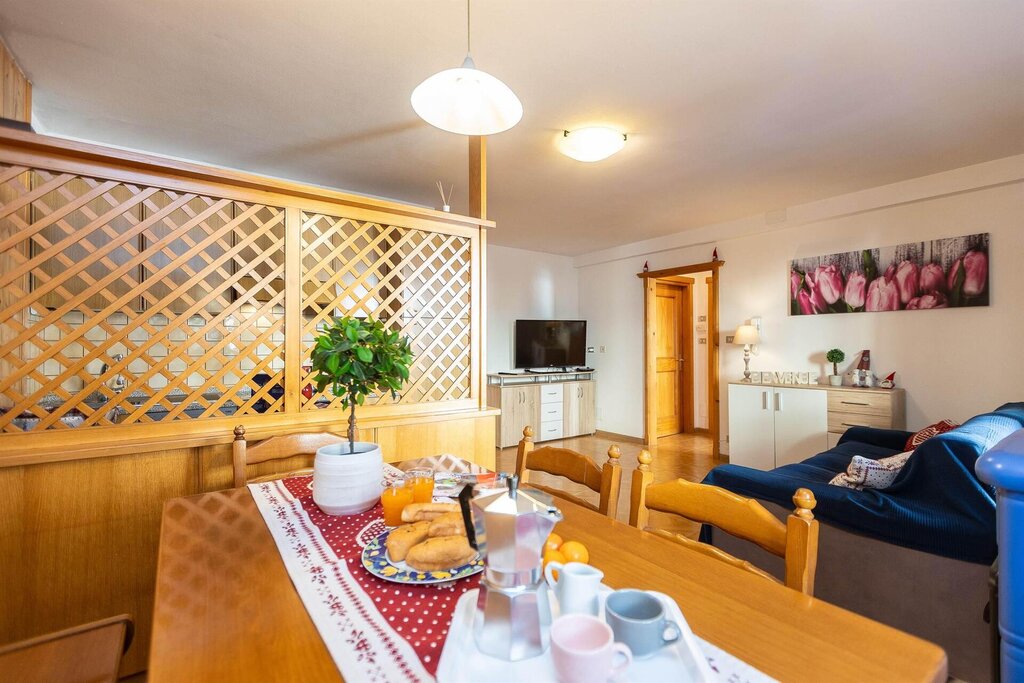 Ciasa de Vich is located in the heart of the Dolomites in the center of the village of Vigo di Fassa in the Val di Fassa. The apartment is located 200 meters from the Catinaccio lifts near a playground. The property of 67 square meters, consists of two bedrooms, a living room with kitchenette with a double sofa bed and nearby we find a supermarket,
