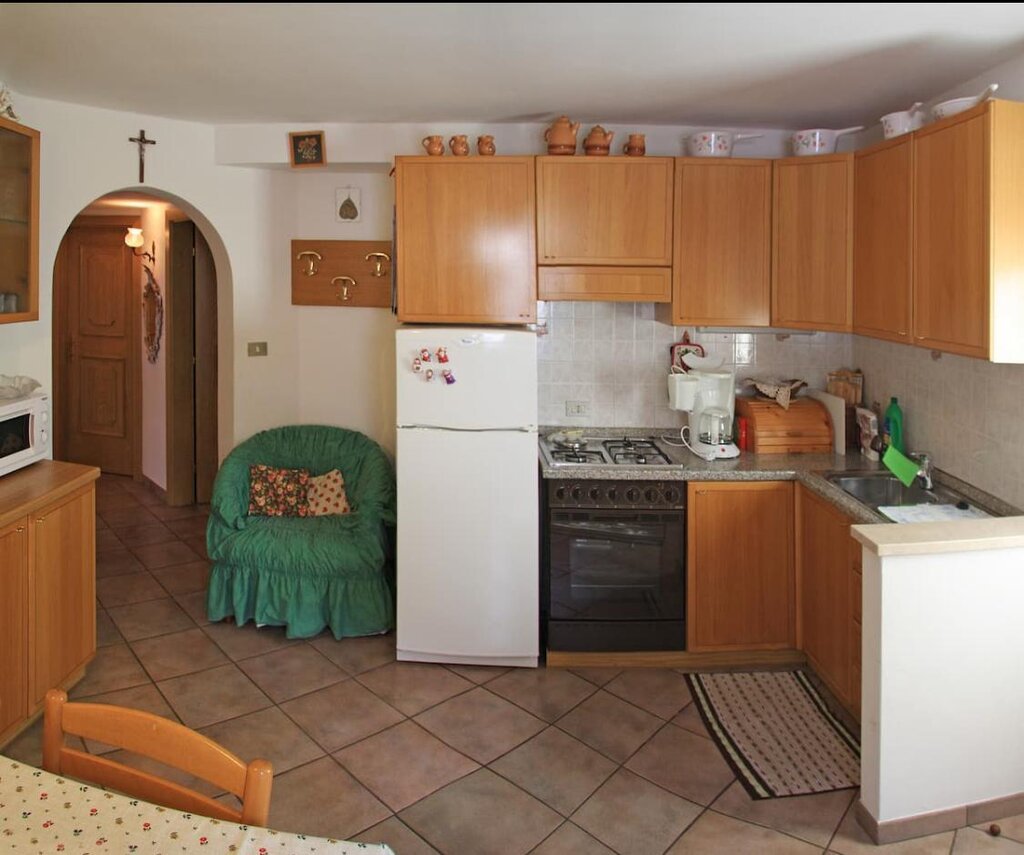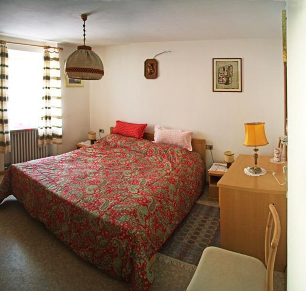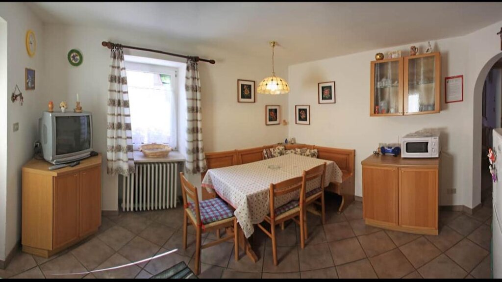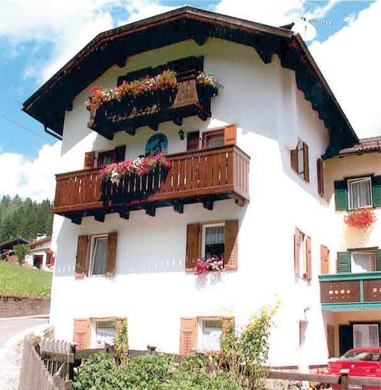 Our flat is situated in a quite zone 1 Km from the centre of Moena, in the little town of Sorte. It is situated on the ground floor and it consists of a kitchen/living area, master bedroom, one bedroom with two single beds, a bathroom and an utility room for skis, suitcases etc. The flat has a television set, radio, hair dryer, iron with ironing board, washing machine, microwave oven, American-type coffee maker and a refrigerator. Bed, bath and kitchen linens are also provided. We also have a parking spot adjacent to the flat. The ski bus stop is only 15m away from the flat. Little pets are welcome.
