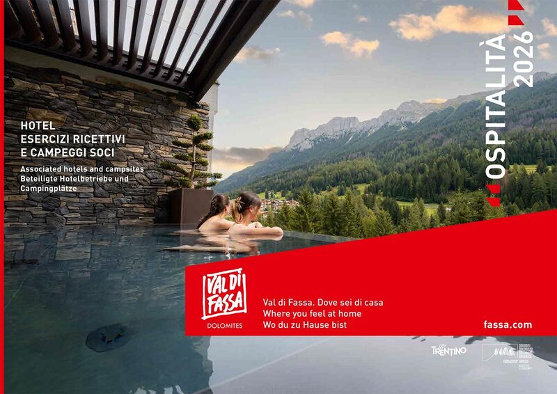 Everything you need to choose and enjoy your stay in the valley. The catalogue offers a complete overview of hotels, guesthouses, B&Bs, farmhouses, mountain huts and campsites associated with the Val di Fassa Tourist Board. The accommodation facilities are divided by location and accompanied by detailed maps to help you find your way around the villages in the valley.