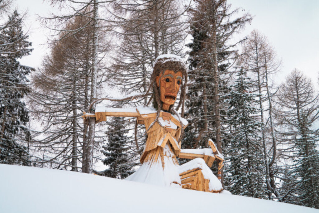 Experience the magic of a unique sunset with "Enrosadira Time" at Buffaure: reach a panoramic viewpoint to admire the Catinaccio, Cima 11 and Cima 12 as the sky turns shades of pink and orange. Once there, a short snow walk among land art installations leads you to discover charming corners, perfect for families and children. To round off the experience, the Buffaure Mountain Hut welcomes you with local delicacies to enjoy in the enchanting atmosphere of sunset — a moment filled with nature, art, and flavour.