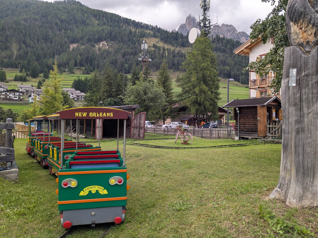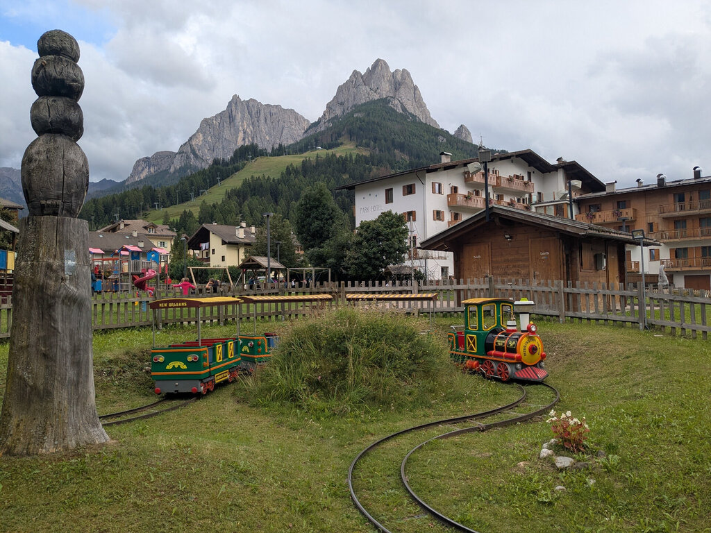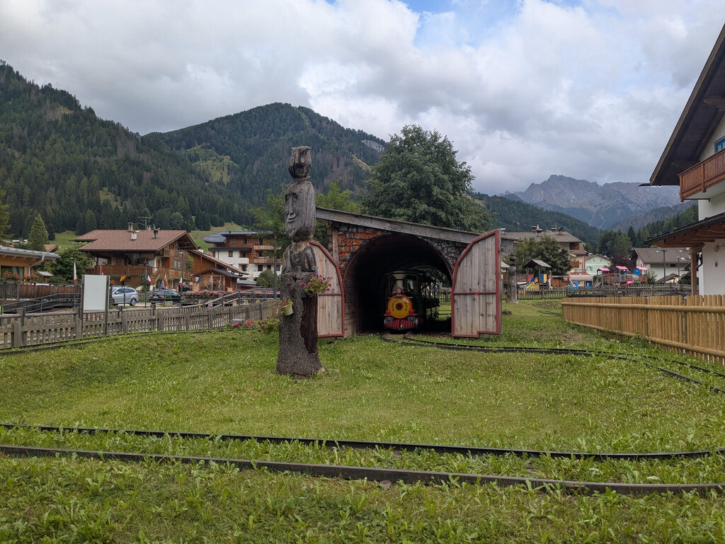 With its locomotive and colorful carriages, it gives children and parents the joy of a short trip surrounded by the wonderful mountains of the Val di Fassa. The attraction is open in the summer months, in the morning, in the afternoon and on two evenings per week. On board you will start to discover the magical village of the gnomes: you will pass in front of a small house dug into the ground, enter the tunnel and then return to the starting point. And if the queue is a bit long, you can wait by playing in the nearby park.