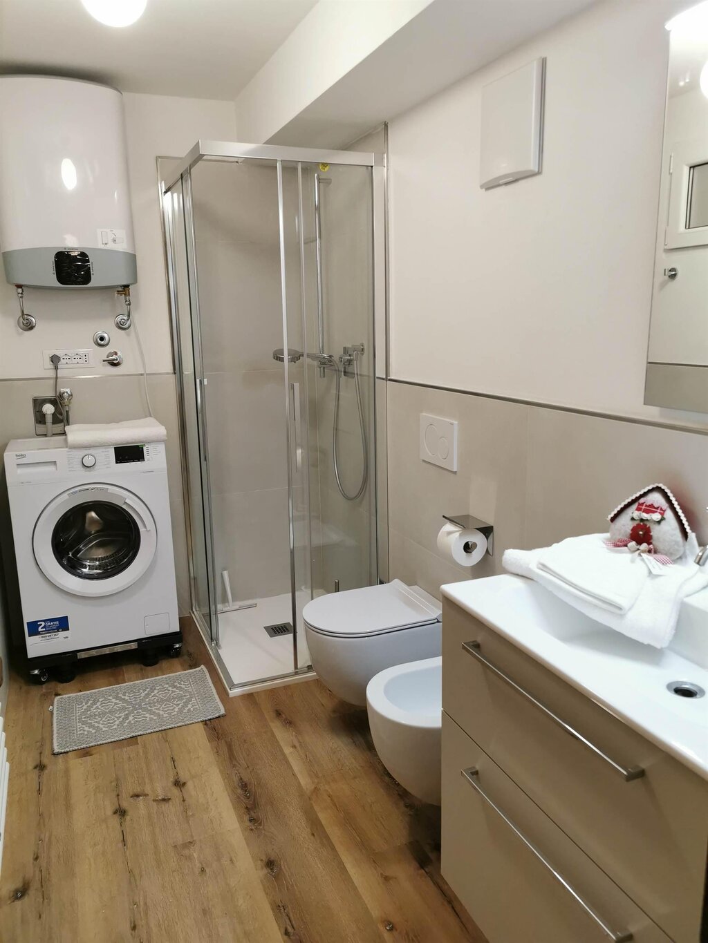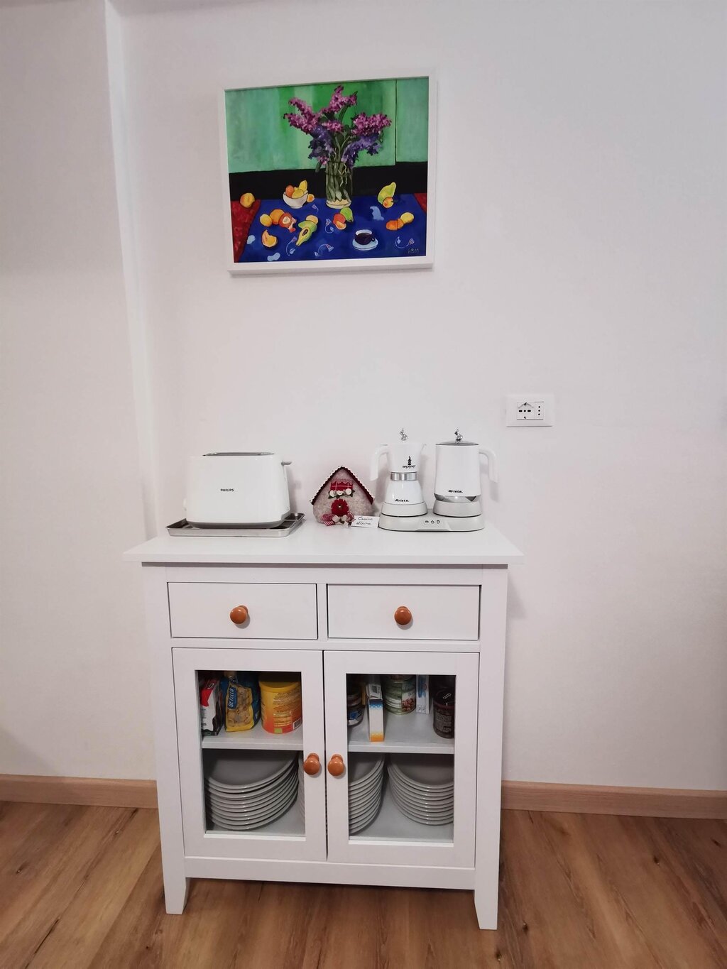 Tutti gli elettrodomestici sono nuovi: microonde, frigorifero maxi, freezer maxi, piano induzione, lavastoviglie, tostapane, caffettiera e monta-latte, televisore smart 32", lavatrice. E' servito da un largo ascensore con accesso dal garage (cinque scalini). Ha un posto auto in garage e cantina.