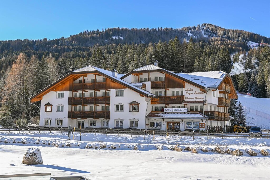 Il Lupo Bianco è un hotel 4 stelle a soli 4 km da Canazei in Trentino, tra i Passi piu' famosi delle Dolomiti. Con un immenso balcone che si affaccia sul Gruppo del Sella, primeggia, in una posizione esclusiva, per passeggiate, escursioni e settimane bianche nel comprensorio DolomitiSuperski. Attenzione e cura dei dettagli, eccellente cucina,