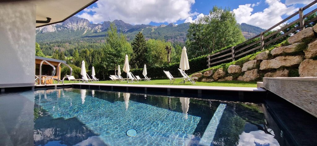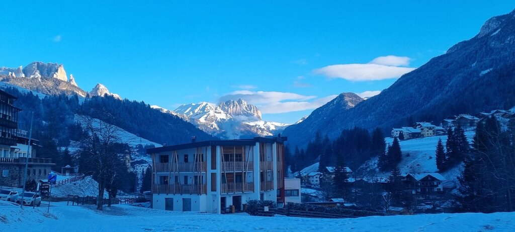 Dove la tradizione ladina incontra il benessere più autentico. All’Hotel Miravalle ogni giornata inizia con panorami che emozionano e si conclude avvolti dal calore dell’ospitalità fassana. Il fiore all’occhiello è senza dubbio l’area wellness: una piscina interna collegata all’esterno, per nuotare sospesi tra le Dolomiti; un curatissimo centro benessere con saune, bagni di vapore e zone relax; e una scenografica sauna panoramica in giardino, perfetta per staccare la spina guardando le cime illuminarsi di rosso al tramonto. La cucina, ricca di sapori locali e ricette genuine, è un altro punto di forza: piatti curati, materie prime selezionate e un tocco creativo che conquista ogni palato. Le camere, luminose e accoglienti, sono pensate per soddisfare ogni esigenza: dalle coppie in cerca di romanticismo alle famiglie che desiderano spazio, comfort e praticità. Per chi desidera rigenerarsi completamente, sono a disposizione anche un centro estetico per trattamenti mirati e una parrucchiera interna, perfetta per coccole extra e look impeccabili anche in vacanza. In estate e in inverno l’hotel è un vero paradiso per gli amanti dello sport: trekking, bike, passeggiate in quota e avventure outdoor nei mesi più caldi; sci, ciaspolate, slittino e tutte le emozioni della neve quando l’inverno veste la Val di Fassa di bianco. Hotel Miravalle: il luogo dove benessere, gusto e Dolomiti si fondono in un’esperienza che resta nel cuore.