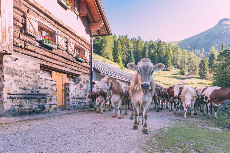 I cibi sono tutti genuini, a cominciare dai taglieri di formaggi di diverse qualità "home made", per proseguire con lo speck locale, lo yogurt, con frutti di bosco, miele e noci, le torte preparate con ingredienti a chilometro zero. A queste proposte, ideali per una merenda rinvigorente, si affiancano per i pranzi o le cene (solo su prenotazione) primi come canederli, gnocchi di patate, ravioli alle erbette e fonduta o spaghettoni alle erbe di montagna, e secondi quali uova con patate e speck, frittate di formaggi, grigliate di carne, verdure e insalate fresche. Il tutto si assapora nell’accogliente sala della malga, ma anche ai tavoli all’aperto da cui si gode una bella vista sulle cime di Fassa e sui vicini prati dove pascolano mucche, capre, asini e cavalli. Da giugno a settembre, la signora Lucia organizza tante attività per i bambini, per farli toccare con mano le attività della malga.